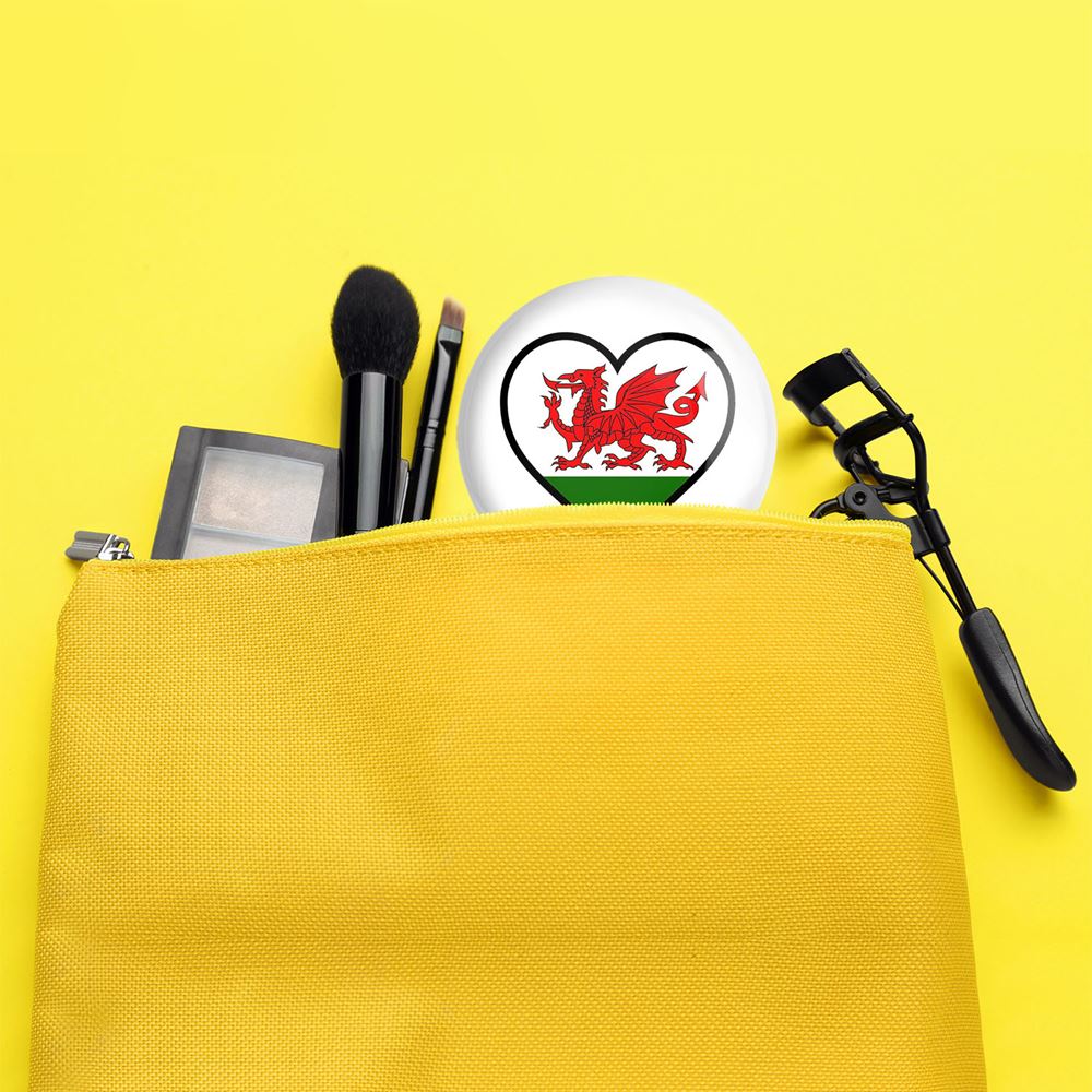 آینه های جیبی پرچم ولز خندالو دایره ای به قطر 7.5 سانتی متر می باشد که نه خیلی بزرگ و غیر قابل استفاده در کیف آرایشی ست و نه خیلی کوچک که تصویر خاصی در آن مشاهده نشود. سایزی استاندارد و کارآمد دارد و مناسب قرار گیری در کیف لوازم آرایش و کیف های کوچک دستی نیز هست.