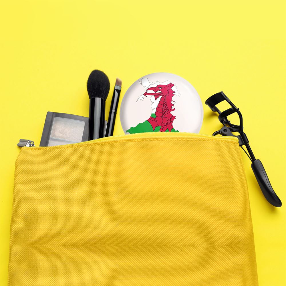 آینه های جیبی پرچم ولز خندالو دایره ای به قطر 7.5 سانتی متر می باشد که نه خیلی بزرگ و غیر قابل استفاده در کیف آرایشی ست و نه خیلی کوچک که تصویر خاصی در آن مشاهده نشود. سایزی استاندارد و کارآمد دارد و مناسب قرار گیری در کیف لوازم آرایش و کیف های کوچک دستی نیز هست. بدنه ی آینه جیبی پرچم ولز در قسمتی که آینه را در بر گرفته فلزی بوده و ظاهر براق و بسیار زیبایی دارد. چاپ طرح در پشت آینه بوسیله چاپگرهای دیجیتال شش رنگ با شفافیت و کیفیتی مثال زدنی انجام گرفته و با روکش لمینت حرارتی پوشیده شده که در مقابل آسیب و خط و خش مقاوم بوده و کیفیت بالایی دارد. آینه های جیبی پرچم ولز خندالو با تنوع طرحی بسیار بالا، سلیقه هر نوع مخاطبی را تامین میکند.