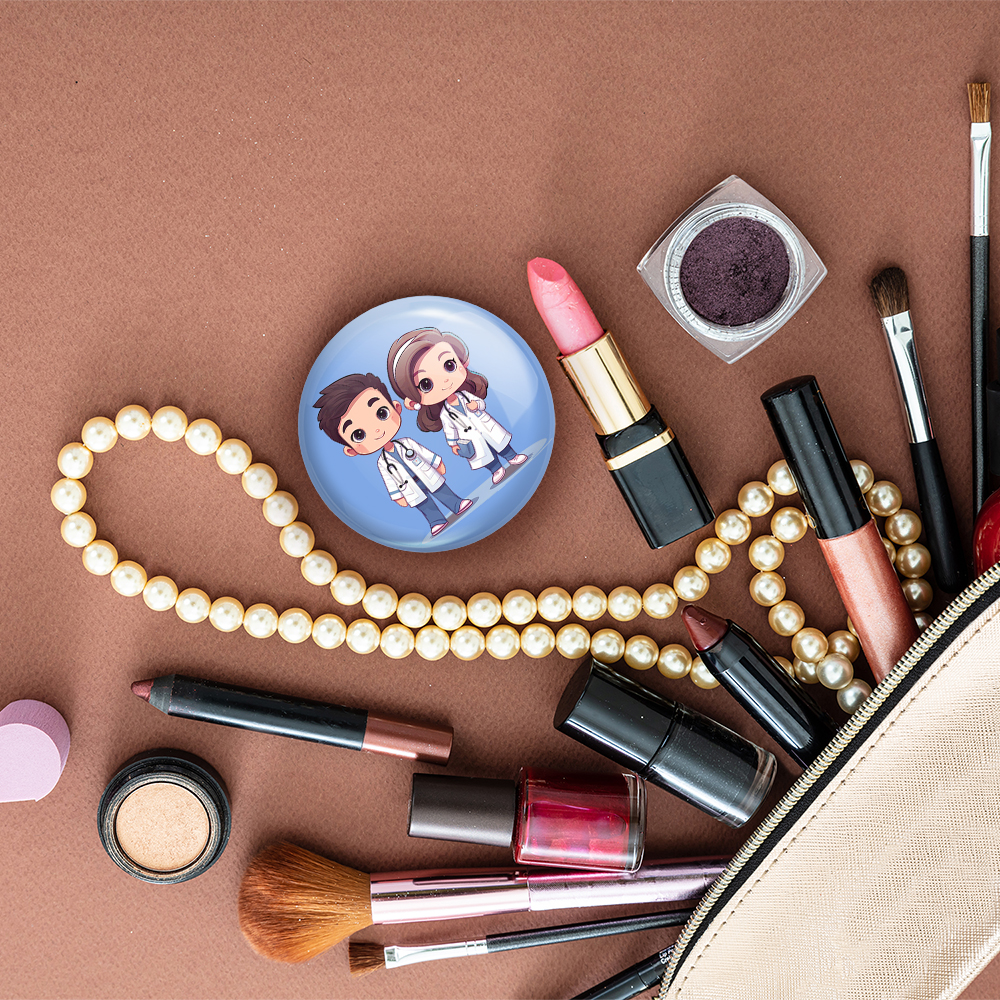 آینه های جیبی پزشک و پرستار کودکانه خندالو دایره ای به قطر 7.5 سانتی متر می باشد که نه خیلی بزرگ و غیر قابل استفاده در کیف آرایشی ست و نه خیلی کوچک که تصویر خاصی در آن مشاهده نشود. سایزی استاندارد و کارآمد دارد و مناسب قرار گیری در کیف لوازم آرایش و کیف های کوچک دستی نیز هست. بدنه ی آینه جیبی پزشک و پرستار کودکانه در قسمتی که آینه را در بر گرفته فلزی بوده و ظاهر براق و بسیار زیبایی دارد. چاپ طرح در پشت آینه بوسیله چاپگرهای دیجیتال شش رنگ با شفافیت و کیفیتی مثال زدنی انجام گرفته و با روکش لمینت حرارتی پوشیده شده که در مقابل آسیب و خط و خش مقاوم بوده و کیفیت بالایی دارد. آینه های جیبی پزشک و پرستار کودکانه خندالو با تنوع طرحی بسیار بالا، سلیقه هر نوع مخاطبی را تامین میکند.