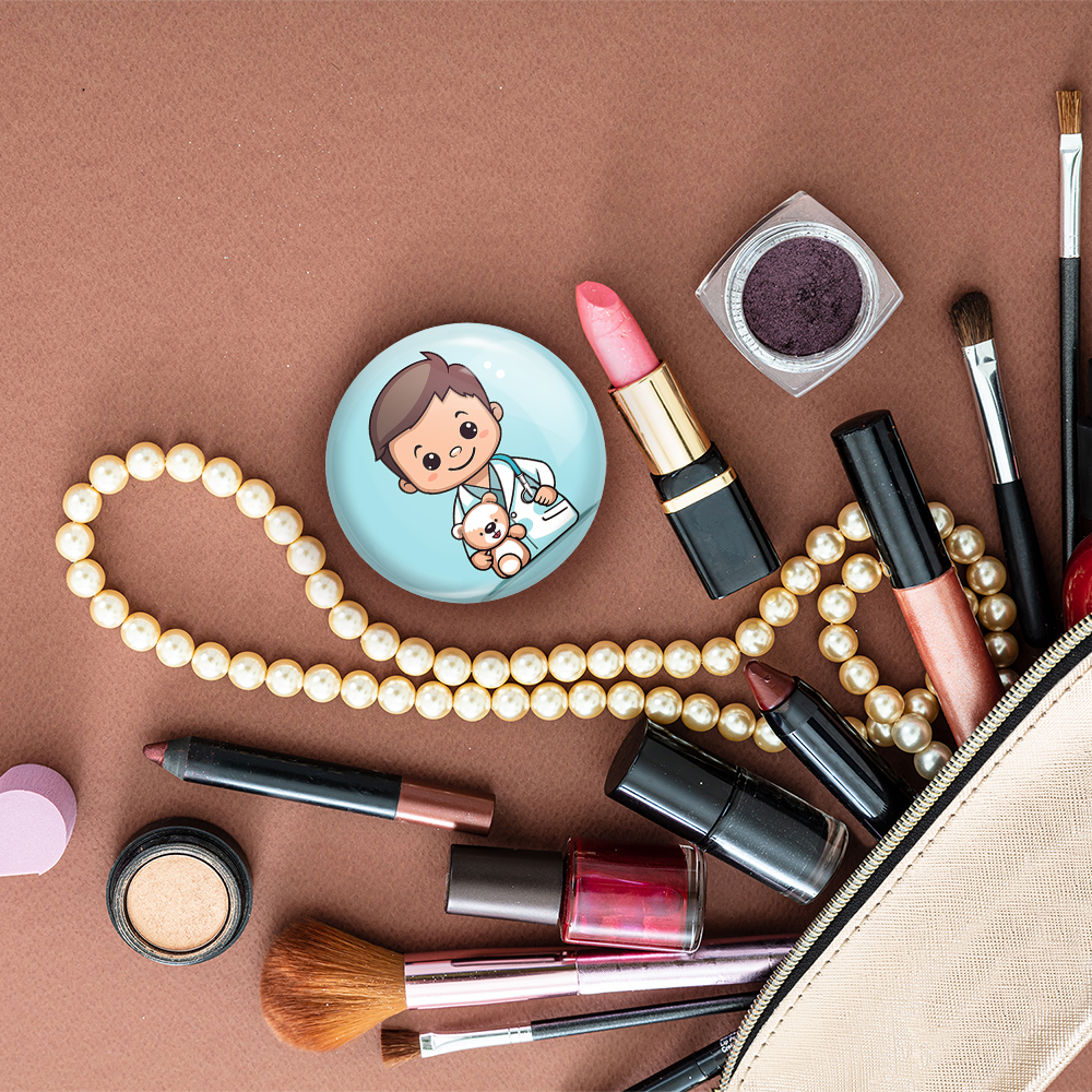 آینه های جیبی پزشک و پرستار کودکانه خندالو دایره ای به قطر 7.5 سانتی متر می باشد که نه خیلی بزرگ و غیر قابل استفاده در کیف آرایشی ست و نه خیلی کوچک که تصویر خاصی در آن مشاهده نشود. سایزی استاندارد و کارآمد دارد و مناسب قرار گیری در کیف لوازم آرایش و کیف های کوچک دستی نیز هست.