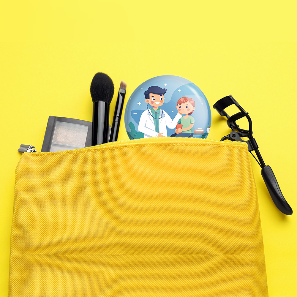 آینه های جیبی پزشک و پرستار کودکانه خندالو دایره ای به قطر 7.5 سانتی متر می باشد که نه خیلی بزرگ و غیر قابل استفاده در کیف آرایشی ست و نه خیلی کوچک که تصویر خاصی در آن مشاهده نشود. سایزی استاندارد و کارآمد دارد و مناسب قرار گیری در کیف لوازم آرایش و کیف های کوچک دستی نیز هست. بدنه ی آینه جیبی پزشک و پرستار کودکانه در قسمتی که آینه را در بر گرفته فلزی بوده و ظاهر براق و بسیار زیبایی دارد. چاپ طرح در پشت آینه بوسیله چاپگرهای دیجیتال شش رنگ با شفافیت و کیفیتی مثال زدنی انجام گرفته و با روکش لمینت حرارتی پوشیده شده که در مقابل آسیب و خط و خش مقاوم بوده و کیفیت بالایی دارد. آینه های جیبی پزشک و پرستار کودکانه خندالو با تنوع طرحی بسیار بالا، سلیقه هر نوع مخاطبی را تامین میکند.