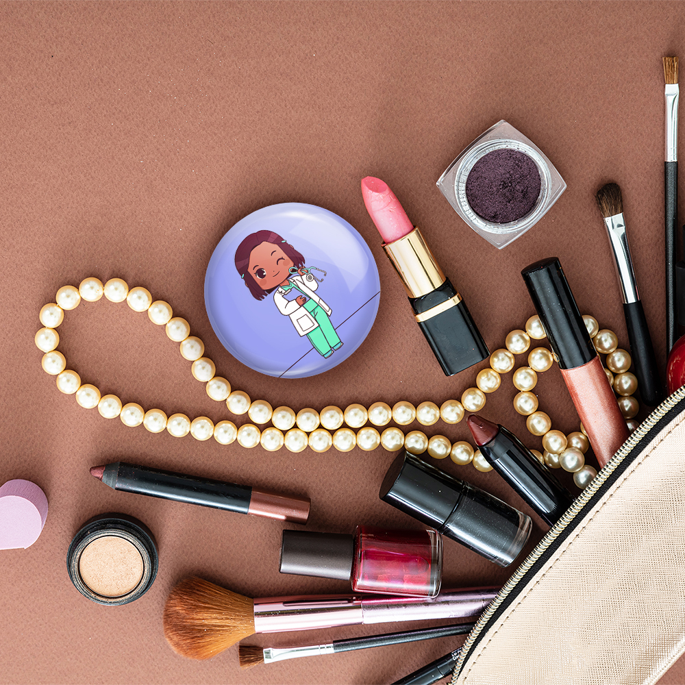 آینه های جیبی پزشک و پرستار کودکانه خندالو دایره ای به قطر 7.5 سانتی متر می باشد که نه خیلی بزرگ و غیر قابل استفاده در کیف آرایشی ست و نه خیلی کوچک که تصویر خاصی در آن مشاهده نشود. سایزی استاندارد و کارآمد دارد و مناسب قرار گیری در کیف لوازم آرایش و کیف های کوچک دستی نیز هست.