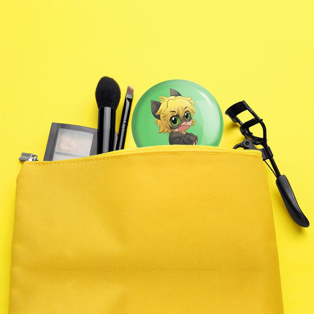 آینه های جیبی پسر گربه ای خندالو دایره ای به قطر 7.5 سانتی متر می باشد که نه خیلی بزرگ و غیر قابل استفاده در کیف آرایشی ست و نه خیلی کوچک که تصویر خاصی در آن مشاهده نشود. سایزی استاندارد و کارآمد دارد و مناسب قرار گیری در کیف لوازم آرایش و کیف های کوچک دستی نیز هست.