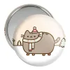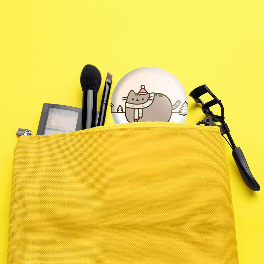 آینه های جیبی پوشین گربه بامزه خندالو دایره ای به قطر 7.5 سانتی متر می باشد که نه خیلی بزرگ و غیر قابل استفاده در کیف آرایشی ست و نه خیلی کوچک که تصویر خاصی در آن مشاهده نشود. سایزی استاندارد و کارآمد دارد و مناسب قرار گیری در کیف لوازم آرایش و کیف های کوچک دستی نیز هست.