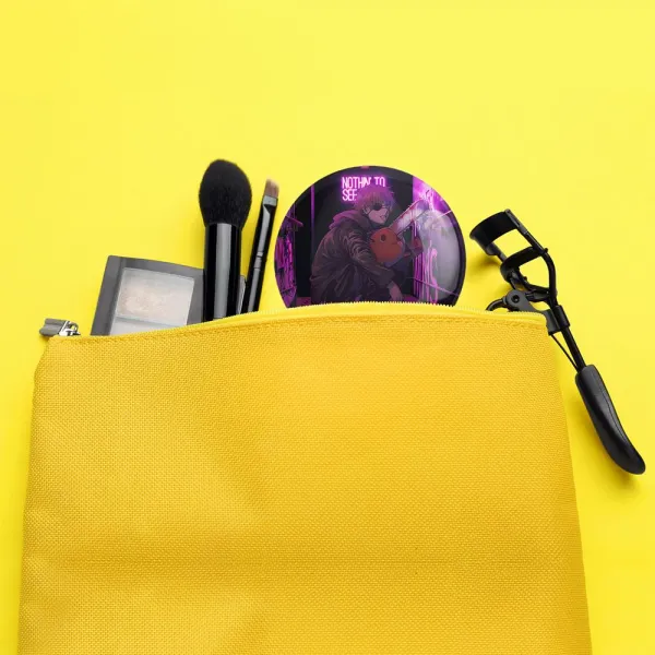 آینه های جیبی پوچیتا و دنجی انیمه مرد اره ای Chainsaw Man خندالو دایره ای به قطر 7.5 سانتی متر می باشد که نه خیلی بزرگ و غیر قابل استفاده در کیف آرایشی ست و نه خیلی کوچک که تصویر خاصی در آن مشاهده نشود. سایزی استاندارد و کارآمد دارد و مناسب قرار گیری در کیف لوازم آرایش و کیف های کوچک دستی نیز هست. بدنه ی آینه جیبی پوچیتا و دنجی انیمه مرد اره ای Chainsaw Man در قسمتی که آینه را در بر گرفته فلزی بوده و ظاهر براق و بسیار زیبایی دارد. چاپ طرح در پشت آینه بوسیله چاپگرهای دیجیتال شش رنگ با شفافیت و کیفیتی مثال زدنی انجام گرفته و با روکش لمینت حرارتی پوشیده شده که در مقابل آسیب و خط و خش مقاوم بوده و کیفیت بالایی دارد. آینه های جیبی پوچیتا و دنجی انیمه مرد اره ای Chainsaw Man خندالو با تنوع طرحی بسیار بالا، سلیقه هر نوع مخاطبی را تامین میکند.