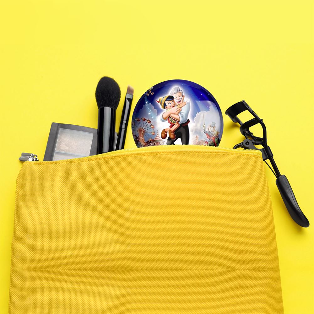 آینه های جیبی پینوکیو Pinocchio خندالو دایره ای به قطر 7.5 سانتی متر می باشد که نه خیلی بزرگ و غیر قابل استفاده در کیف آرایشی ست و نه خیلی کوچک که تصویر خاصی در آن مشاهده نشود. سایزی استاندارد و کارآمد دارد و مناسب قرار گیری در کیف لوازم آرایش و کیف های کوچک دستی نیز هست.
