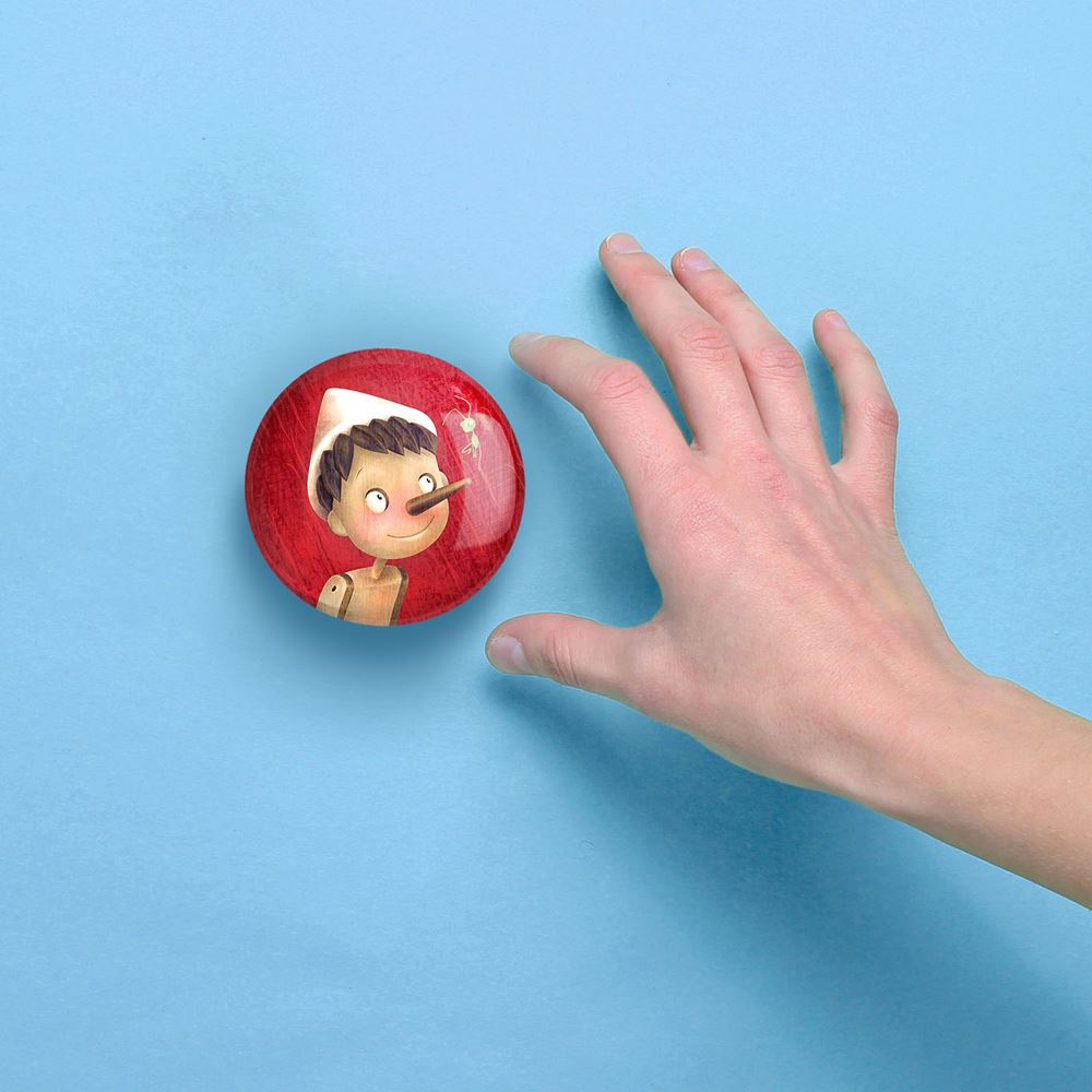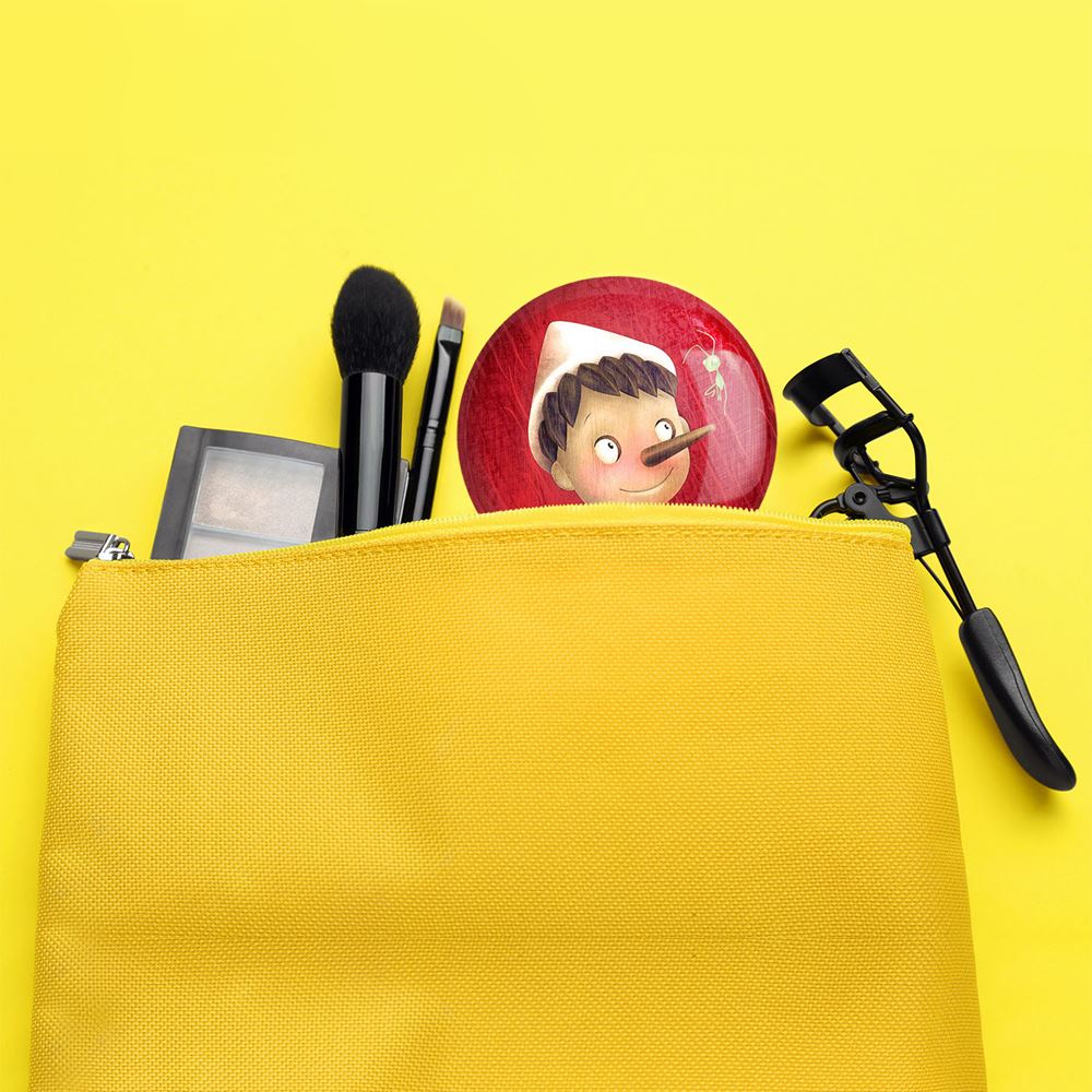 آینه های جیبی پینوکیو Pinocchio خندالو دایره ای به قطر 7.5 سانتی متر می باشد که نه خیلی بزرگ و غیر قابل استفاده در کیف آرایشی ست و نه خیلی کوچک که تصویر خاصی در آن مشاهده نشود. سایزی استاندارد و کارآمد دارد و مناسب قرار گیری در کیف لوازم آرایش و کیف های کوچک دستی نیز هست.