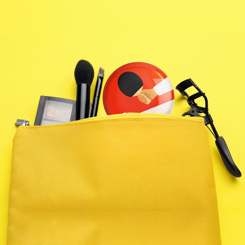 آینه های جیبی پینگ پنگ Ping Pong خندالو دایره ای به قطر 7.5 سانتی متر می باشد که نه خیلی بزرگ و غیر قابل استفاده در کیف آرایشی ست و نه خیلی کوچک که تصویر خاصی در آن مشاهده نشود. سایزی استاندارد و کارآمد دارد و مناسب قرار گیری در کیف لوازم آرایش و کیف های کوچک دستی نیز هست. بدنه ی آینه جیبی پینگ پنگ Ping Pong در قسمتی که آینه را در بر گرفته فلزی بوده و ظاهر براق و بسیار زیبایی دارد. چاپ طرح در پشت آینه بوسیله چاپگرهای دیجیتال شش رنگ با شفافیت و کیفیتی مثال زدنی انجام گرفته و با روکش لمینت حرارتی پوشیده شده که در مقابل آسیب و خط و خش مقاوم بوده و کیفیت بالایی دارد. آینه های جیبی پینگ پنگ Ping Pong خندالو با تنوع طرحی بسیار بالا، سلیقه هر نوع مخاطبی را تامین میکند.