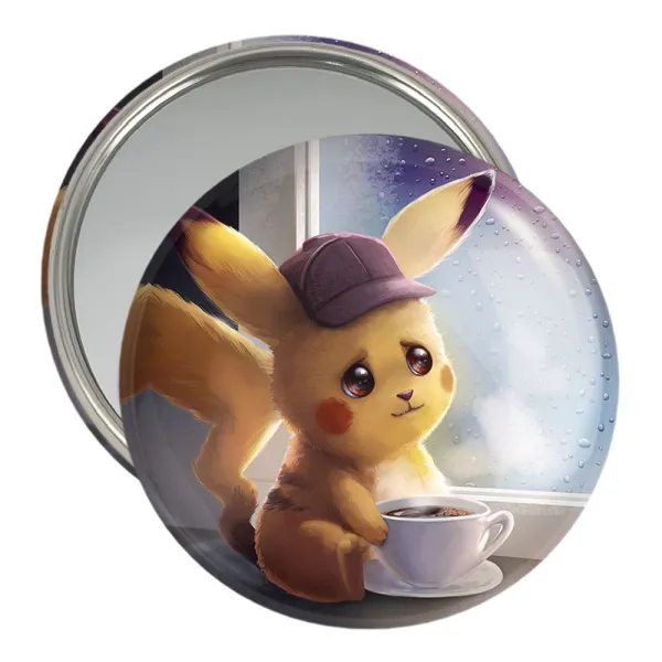 آینه های جیبی پیکاچو انیمه پوکمون خندالو دایره ای به قطر 7.5 سانتی متر می باشد که نه خیلی بزرگ و غیر قابل استفاده در کیف آرایشی ست و نه خیلی کوچک که تصویر خاصی در آن مشاهده نشود. سایزی استاندارد و کارآمد دارد و مناسب قرار گیری در کیف لوازم آرایش و کیف های کوچک دستی نیز هست.