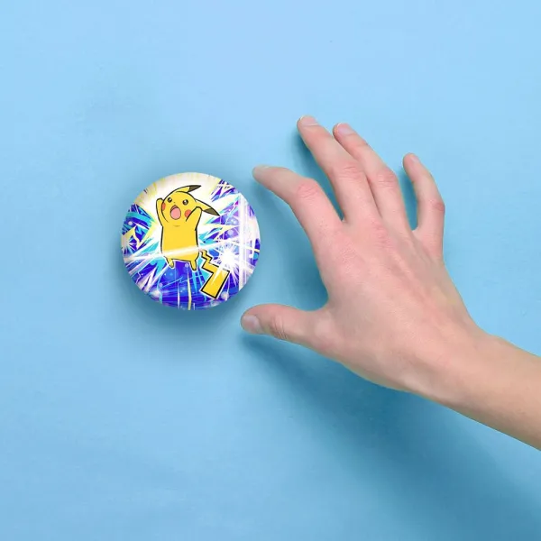 آینه های جیبی پیکاچو انیمه پوکمون خندالو دایره ای به قطر 7.5 سانتی متر می باشد که نه خیلی بزرگ و غیر قابل استفاده در کیف آرایشی ست و نه خیلی کوچک که تصویر خاصی در آن مشاهده نشود. سایزی استاندارد و کارآمد دارد و مناسب قرار گیری در کیف لوازم آرایش و کیف های کوچک دستی نیز هست.