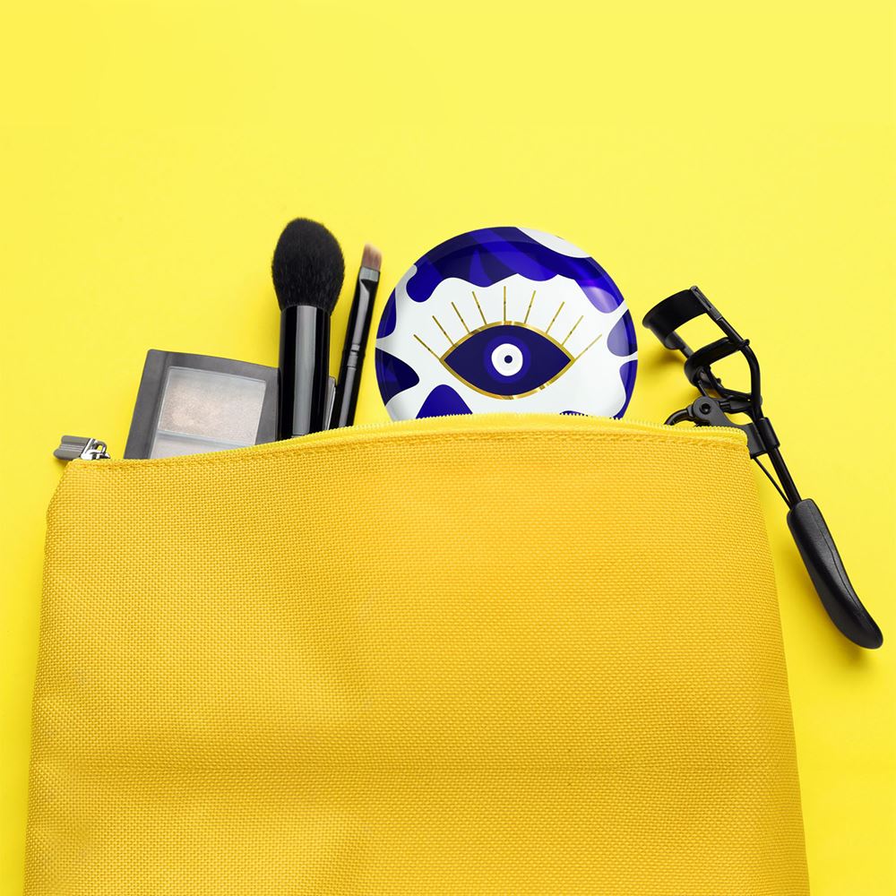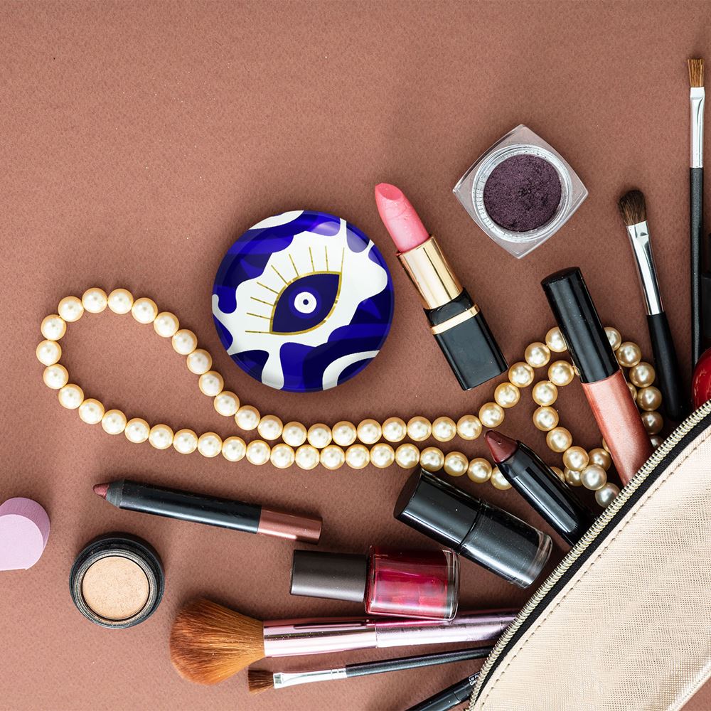آینه های جیبی چشم نظر خندالو دایره ای به قطر 7.5 سانتی متر می باشد که نه خیلی بزرگ و غیر قابل استفاده در کیف آرایشی ست و نه خیلی کوچک که تصویر خاصی در آن مشاهده نشود. سایزی استاندارد و کارآمد دارد و مناسب قرار گیری در کیف لوازم آرایش و کیف های کوچک دستی نیز هست.