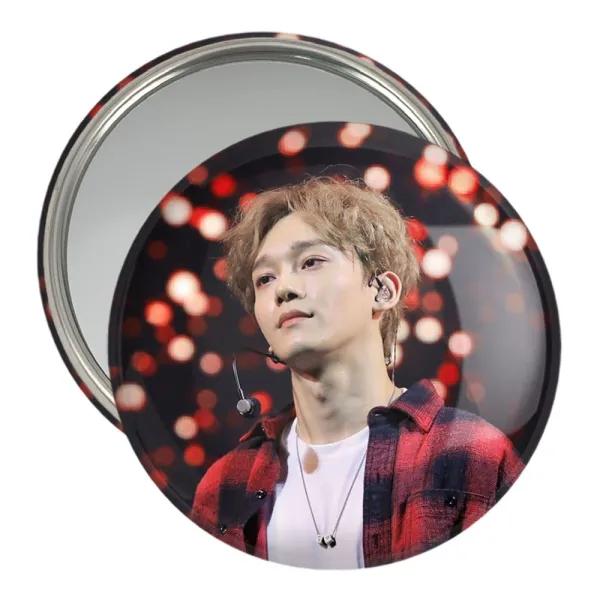 آینه های جیبی چن گروه اکسو EXO خندالو دایره ای به قطر 7.5 سانتی متر می باشد که نه خیلی بزرگ و غیر قابل استفاده در کیف آرایشی ست و نه خیلی کوچک که تصویر خاصی در آن مشاهده نشود. سایزی استاندارد و کارآمد دارد و مناسب قرار گیری در کیف لوازم آرایش و کیف های کوچک دستی نیز هست.