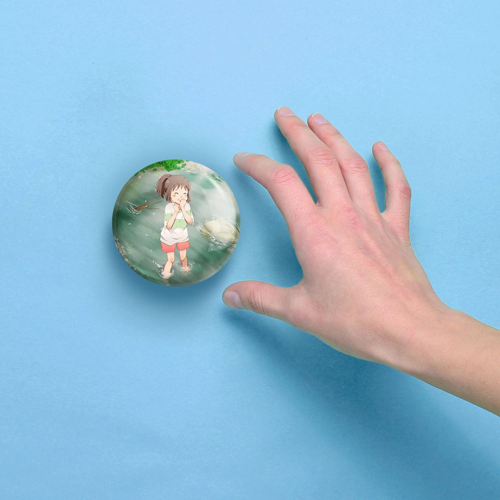 آینه های جیبی چیهیرو و هاکو انیمه شهر اشباح Spirited Away خندالو دایره ای به قطر 7.5 سانتی متر می باشد که نه خیلی بزرگ و غیر قابل استفاده در کیف آرایشی ست و نه خیلی کوچک که تصویر خاصی در آن مشاهده نشود. سایزی استاندارد و کارآمد دارد و مناسب قرار گیری در کیف لوازم آرایش و کیف های کوچک دستی نیز هست. بدنه ی آینه جیبی چیهیرو و هاکو انیمه شهر اشباح Spirited Away در قسمتی که آینه را در بر گرفته فلزی بوده و ظاهر براق و بسیار زیبایی دارد. چاپ طرح در پشت آینه بوسیله چاپگرهای دیجیتال شش رنگ با شفافیت و کیفیتی مثال زدنی انجام گرفته و با روکش لمینت حرارتی پوشیده شده که در مقابل آسیب و خط و خش مقاوم بوده و کیفیت بالایی دارد. آینه های جیبی چیهیرو و هاکو انیمه شهر اشباح Spirited Away خندالو با تنوع طرحی بسیار بالا، سلیقه هر نوع مخاطبی را تامین میکند.