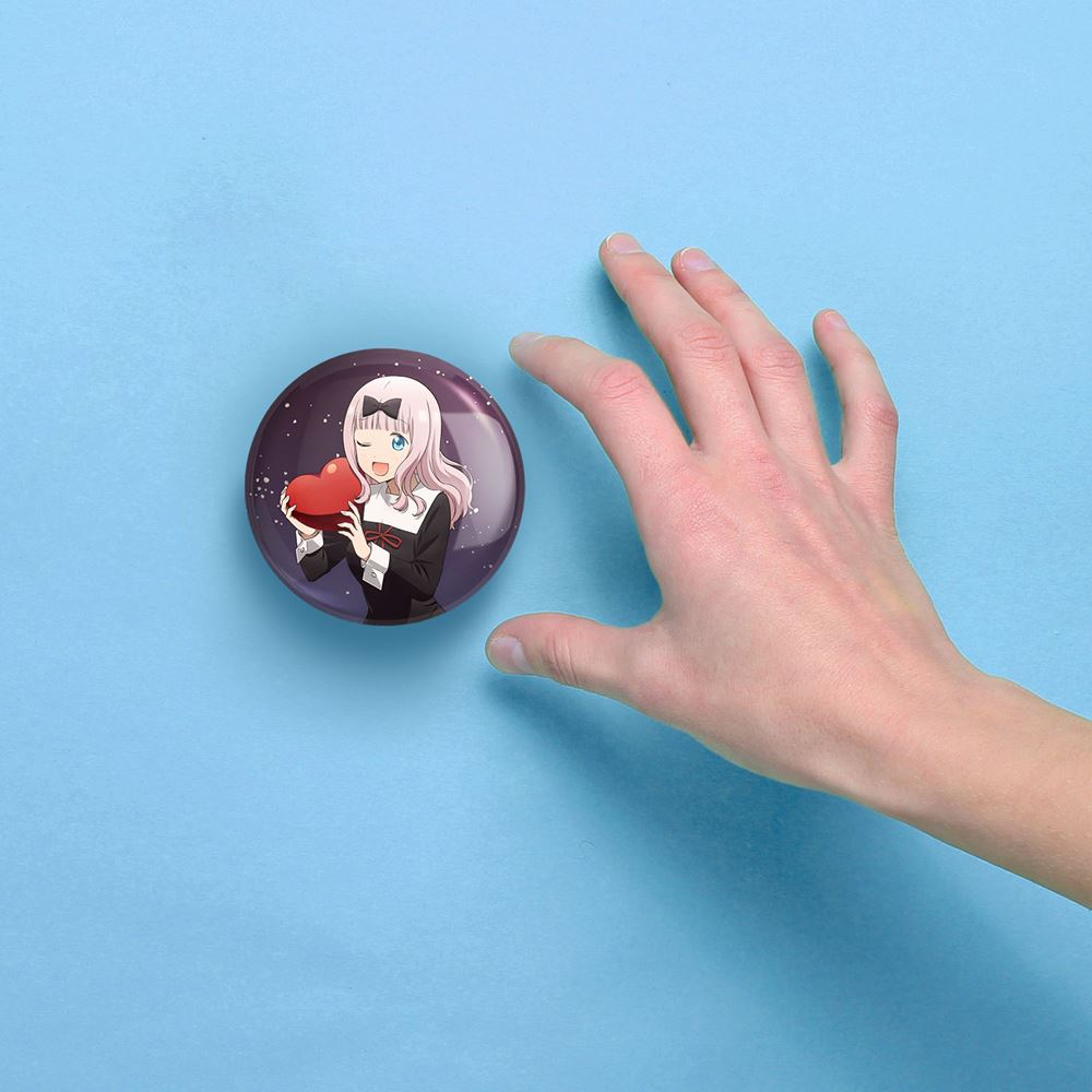 آینه های جیبی چیکا فوجیوارا انیمه کاگویا ساما خندالو دایره ای به قطر 7.5 سانتی متر می باشد که نه خیلی بزرگ و غیر قابل استفاده در کیف آرایشی ست و نه خیلی کوچک که تصویر خاصی در آن مشاهده نشود. سایزی استاندارد و کارآمد دارد و مناسب قرار گیری در کیف لوازم آرایش و کیف های کوچک دستی نیز هست. بدنه ی آینه جیبی چیکا فوجیوارا انیمه کاگویا ساما در قسمتی که آینه را در بر گرفته فلزی بوده و ظاهر براق و بسیار زیبایی دارد. چاپ طرح در پشت آینه بوسیله چاپگرهای دیجیتال شش رنگ با شفافیت و کیفیتی مثال زدنی انجام گرفته و با روکش لمینت حرارتی پوشیده شده که در مقابل آسیب و خط و خش مقاوم بوده و کیفیت بالایی دارد. آینه های جیبی چیکا فوجیوارا انیمه کاگویا ساما خندالو با تنوع طرحی بسیار بالا، سلیقه هر نوع مخاطبی را تامین میکند.