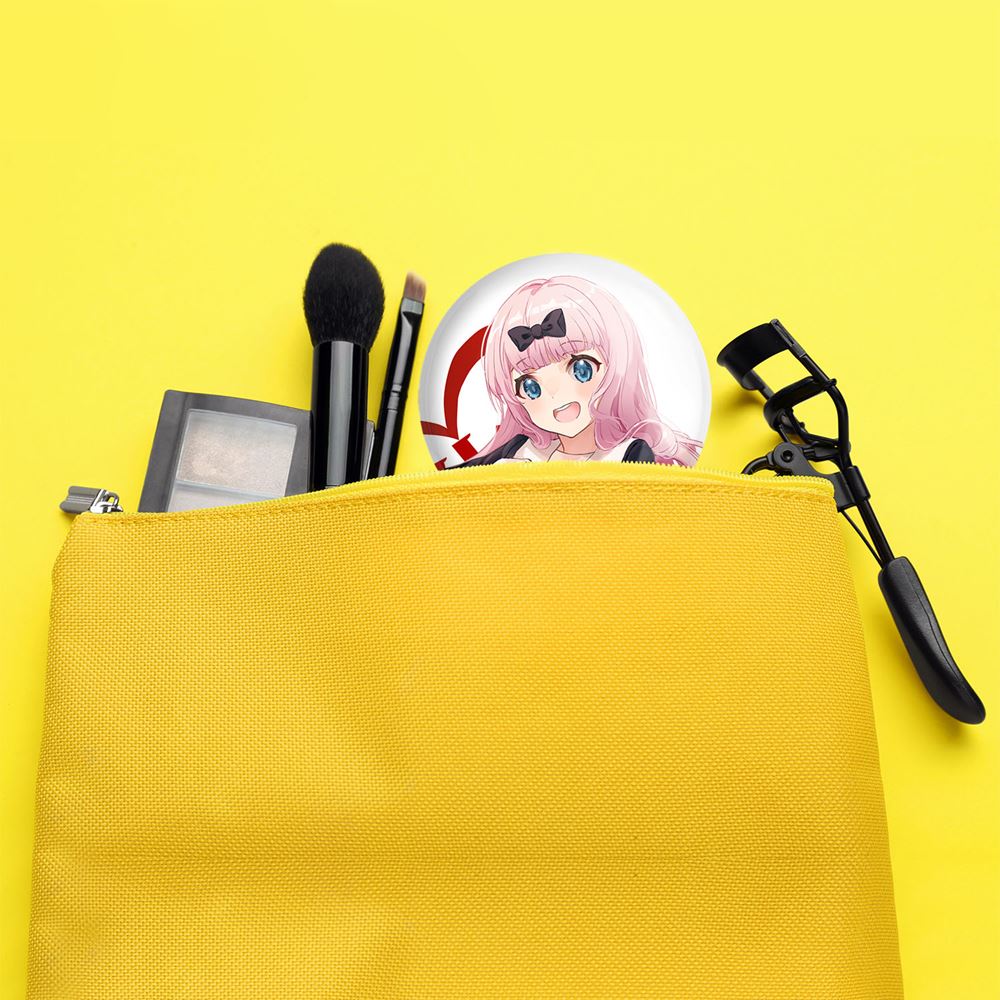 آینه های جیبی چیکا فوجیوارا انیمه کاگویا ساما خندالو دایره ای به قطر 7.5 سانتی متر می باشد که نه خیلی بزرگ و غیر قابل استفاده در کیف آرایشی ست و نه خیلی کوچک که تصویر خاصی در آن مشاهده نشود. سایزی استاندارد و کارآمد دارد و مناسب قرار گیری در کیف لوازم آرایش و کیف های کوچک دستی نیز هست. بدنه ی آینه جیبی چیکا فوجیوارا انیمه کاگویا ساما در قسمتی که آینه را در بر گرفته فلزی بوده و ظاهر براق و بسیار زیبایی دارد. چاپ طرح در پشت آینه بوسیله چاپگرهای دیجیتال شش رنگ با شفافیت و کیفیتی مثال زدنی انجام گرفته و با روکش لمینت حرارتی پوشیده شده که در مقابل آسیب و خط و خش مقاوم بوده و کیفیت بالایی دارد. آینه های جیبی چیکا فوجیوارا انیمه کاگویا ساما خندالو با تنوع طرحی بسیار بالا، سلیقه هر نوع مخاطبی را تامین میکند.