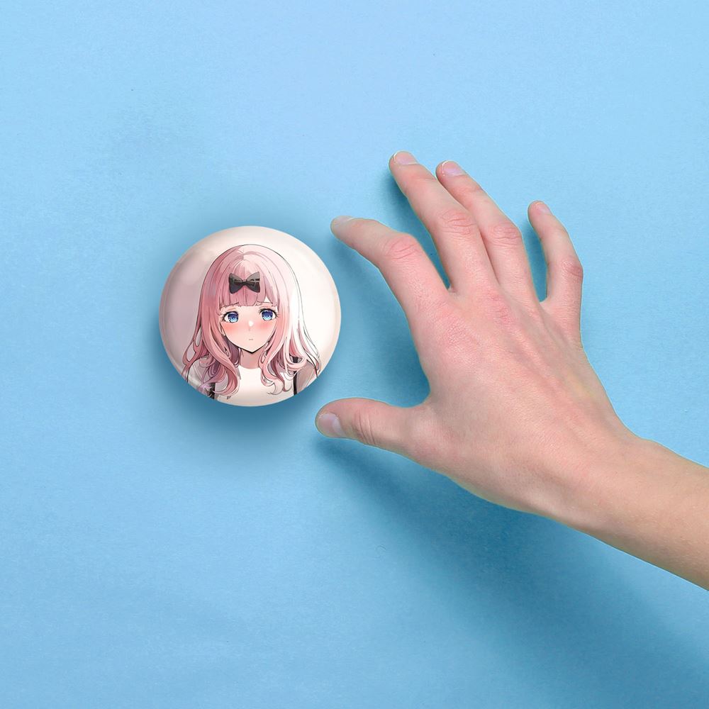 آینه های جیبی چیکا فوجیوارا انیمه کاگویا ساما خندالو دایره ای به قطر 7.5 سانتی متر می باشد که نه خیلی بزرگ و غیر قابل استفاده در کیف آرایشی ست و نه خیلی کوچک که تصویر خاصی در آن مشاهده نشود. سایزی استاندارد و کارآمد دارد و مناسب قرار گیری در کیف لوازم آرایش و کیف های کوچک دستی نیز هست. بدنه ی آینه جیبی چیکا فوجیوارا انیمه کاگویا ساما در قسمتی که آینه را در بر گرفته فلزی بوده و ظاهر براق و بسیار زیبایی دارد. چاپ طرح در پشت آینه بوسیله چاپگرهای دیجیتال شش رنگ با شفافیت و کیفیتی مثال زدنی انجام گرفته و با روکش لمینت حرارتی پوشیده شده که در مقابل آسیب و خط و خش مقاوم بوده و کیفیت بالایی دارد. آینه های جیبی چیکا فوجیوارا انیمه کاگویا ساما خندالو با تنوع طرحی بسیار بالا، سلیقه هر نوع مخاطبی را تامین میکند.