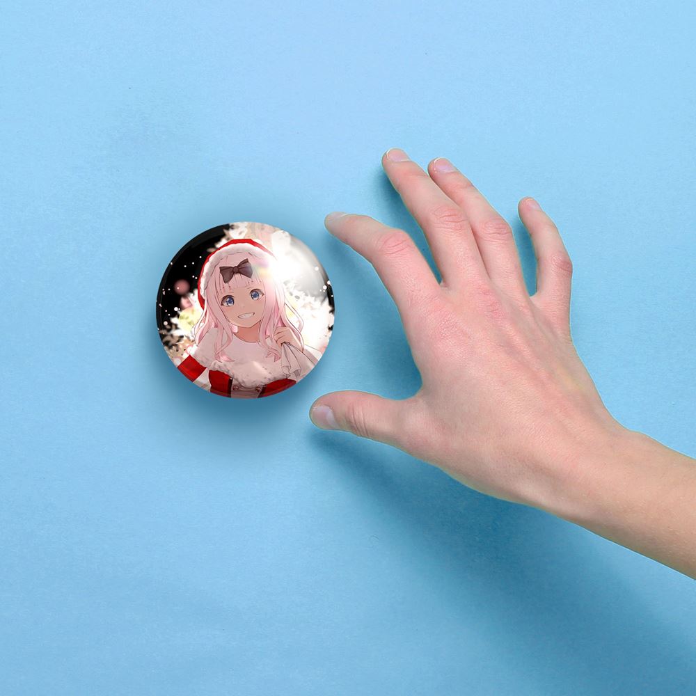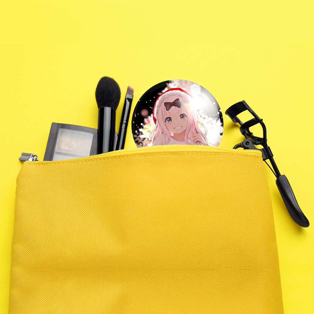 آینه های جیبی چیکا فوجیوارا انیمه کاگویا ساما خندالو دایره ای به قطر 7.5 سانتی متر می باشد که نه خیلی بزرگ و غیر قابل استفاده در کیف آرایشی ست و نه خیلی کوچک که تصویر خاصی در آن مشاهده نشود. سایزی استاندارد و کارآمد دارد و مناسب قرار گیری در کیف لوازم آرایش و کیف های کوچک دستی نیز هست. بدنه ی آینه جیبی چیکا فوجیوارا انیمه کاگویا ساما در قسمتی که آینه را در بر گرفته فلزی بوده و ظاهر براق و بسیار زیبایی دارد. چاپ طرح در پشت آینه بوسیله چاپگرهای دیجیتال شش رنگ با شفافیت و کیفیتی مثال زدنی انجام گرفته و با روکش لمینت حرارتی پوشیده شده که در مقابل آسیب و خط و خش مقاوم بوده و کیفیت بالایی دارد. آینه های جیبی چیکا فوجیوارا انیمه کاگویا ساما خندالو با تنوع طرحی بسیار بالا، سلیقه هر نوع مخاطبی را تامین میکند.