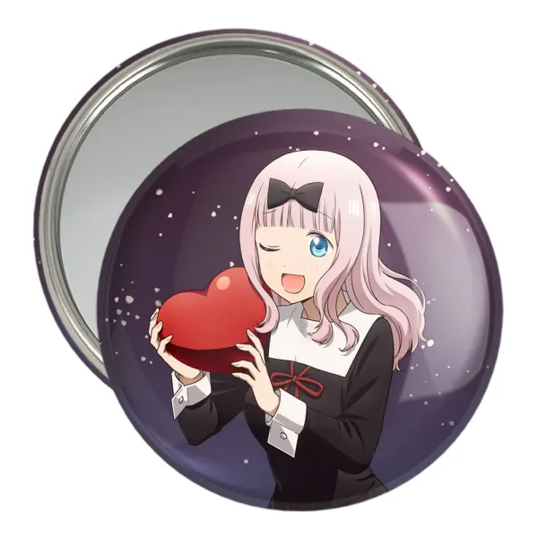 آینه های جیبی چیکا فوجیوارا انیمه کاگویا ساما خندالو دایره ای به قطر 7.5 سانتی متر می باشد که نه خیلی بزرگ و غیر قابل استفاده در کیف آرایشی ست و نه خیلی کوچک که تصویر خاصی در آن مشاهده نشود. سایزی استاندارد و کارآمد دارد و مناسب قرار گیری در کیف لوازم آرایش و کیف های کوچک دستی نیز هست. بدنه ی آینه جیبی چیکا فوجیوارا انیمه کاگویا ساما در قسمتی که آینه را در بر گرفته فلزی بوده و ظاهر براق و بسیار زیبایی دارد. چاپ طرح در پشت آینه بوسیله چاپگرهای دیجیتال شش رنگ با شفافیت و کیفیتی مثال زدنی انجام گرفته و با روکش لمینت حرارتی پوشیده شده که در مقابل آسیب و خط و خش مقاوم بوده و کیفیت بالایی دارد. آینه های جیبی چیکا فوجیوارا انیمه کاگویا ساما خندالو با تنوع طرحی بسیار بالا، سلیقه هر نوع مخاطبی را تامین میکند.