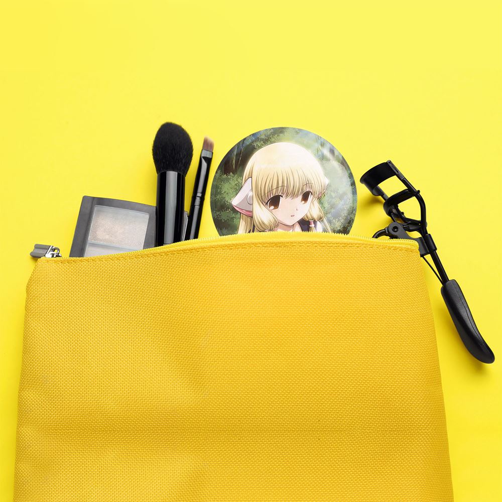آینه های جیبی چی انیمه چوبیتس Chobits خندالو دایره ای به قطر 7.5 سانتی متر می باشد که نه خیلی بزرگ و غیر قابل استفاده در کیف آرایشی ست و نه خیلی کوچک که تصویر خاصی در آن مشاهده نشود. سایزی استاندارد و کارآمد دارد و مناسب قرار گیری در کیف لوازم آرایش و کیف های کوچک دستی نیز هست.