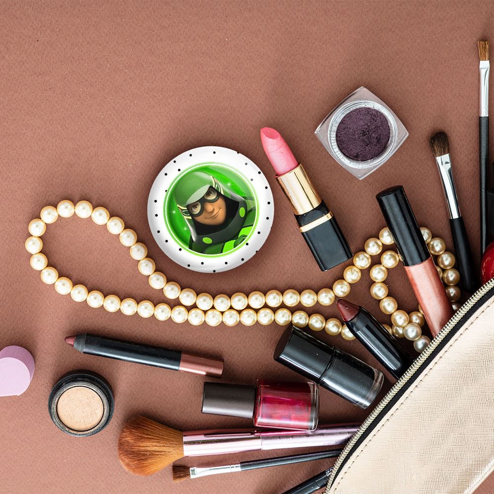 آینه های جیبی کاراپاس دختر کفشدوزکی خندالو دایره ای به قطر 7.5 سانتی متر می باشد که نه خیلی بزرگ و غیر قابل استفاده در کیف آرایشی ست و نه خیلی کوچک که تصویر خاصی در آن مشاهده نشود. سایزی استاندارد و کارآمد دارد و مناسب قرار گیری در کیف لوازم آرایش و کیف های کوچک دستی نیز هست. بدنه ی آینه جیبی کاراپاس دختر کفشدوزکی در قسمتی که آینه را در بر گرفته فلزی بوده و ظاهر براق و بسیار زیبایی دارد. چاپ طرح در پشت آینه بوسیله چاپگرهای دیجیتال شش رنگ با شفافیت و کیفیتی مثال زدنی انجام گرفته و با روکش لمینت حرارتی پوشیده شده که در مقابل آسیب و خط و خش مقاوم بوده و کیفیت بالایی دارد. آینه های جیبی کاراپاس دختر کفشدوزکی خندالو با تنوع طرحی بسیار بالا، سلیقه هر نوع مخاطبی را تامین میکند.