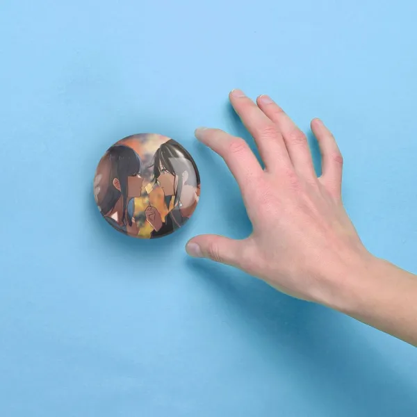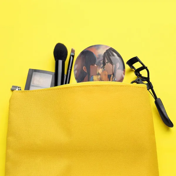آینه های جیبی کاساکی و میزور انیمه لیز و پرنده آبی خندالو دایره ای به قطر 7.5 سانتی متر می باشد که نه خیلی بزرگ و غیر قابل استفاده در کیف آرایشی ست و نه خیلی کوچک که تصویر خاصی در آن مشاهده نشود. سایزی استاندارد و کارآمد دارد و مناسب قرار گیری در کیف لوازم آرایش و کیف های کوچک دستی نیز هست.
