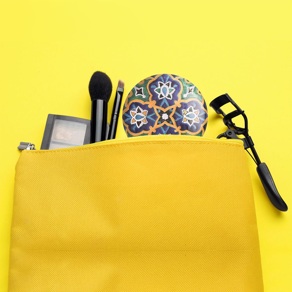 آینه های جیبی کاشی خندالو دایره ای به قطر 7.5 سانتی متر می باشد که نه خیلی بزرگ و غیر قابل استفاده در کیف آرایشی ست و نه خیلی کوچک که تصویر خاصی در آن مشاهده نشود. سایزی استاندارد و کارآمد دارد و مناسب قرار گیری در کیف لوازم آرایش و کیف های کوچک دستی نیز هست. بدنه ی آینه جیبی کاشی در قسمتی که آینه را در بر گرفته فلزی بوده و ظاهر براق و بسیار زیبایی دارد. چاپ طرح در پشت آینه بوسیله چاپگرهای دیجیتال شش رنگ با شفافیت و کیفیتی مثال زدنی انجام گرفته و با روکش لمینت حرارتی پوشیده شده که در مقابل آسیب و خط و خش مقاوم بوده و کیفیت بالایی دارد. آینه های جیبی کاشی خندالو با تنوع طرحی بسیار بالا، سلیقه هر نوع مخاطبی را تامین میکند.