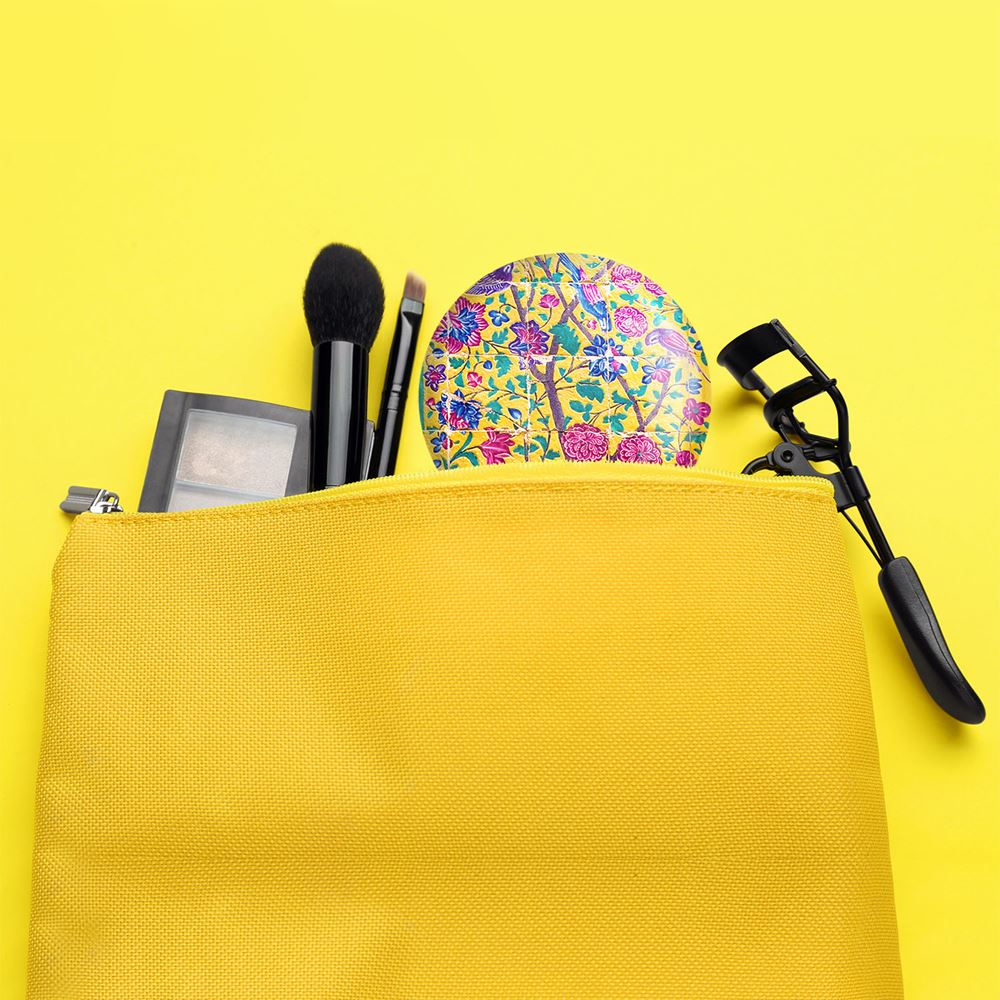 آینه های جیبی کاشی خندالو دایره ای به قطر 7.5 سانتی متر می باشد که نه خیلی بزرگ و غیر قابل استفاده در کیف آرایشی ست و نه خیلی کوچک که تصویر خاصی در آن مشاهده نشود. سایزی استاندارد و کارآمد دارد و مناسب قرار گیری در کیف لوازم آرایش و کیف های کوچک دستی نیز هست. بدنه ی آینه جیبی کاشی در قسمتی که آینه را در بر گرفته فلزی بوده و ظاهر براق و بسیار زیبایی دارد. چاپ طرح در پشت آینه بوسیله چاپگرهای دیجیتال شش رنگ با شفافیت و کیفیتی مثال زدنی انجام گرفته و با روکش لمینت حرارتی پوشیده شده که در مقابل آسیب و خط و خش مقاوم بوده و کیفیت بالایی دارد. آینه های جیبی کاشی خندالو با تنوع طرحی بسیار بالا، سلیقه هر نوع مخاطبی را تامین میکند.