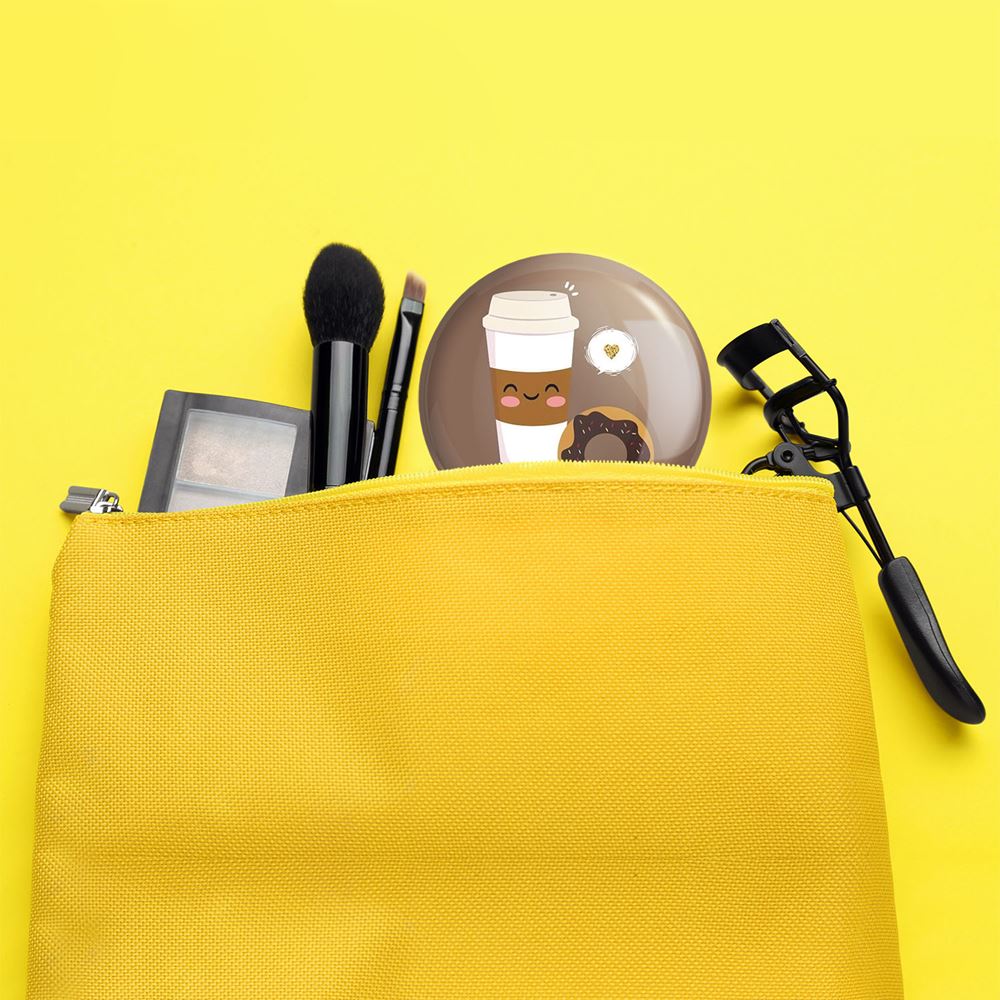 آینه های جیبی کافی شاپ قهوه خندالو دایره ای به قطر 7.5 سانتی متر می باشد که نه خیلی بزرگ و غیر قابل استفاده در کیف آرایشی ست و نه خیلی کوچک که تصویر خاصی در آن مشاهده نشود. سایزی استاندارد و کارآمد دارد و مناسب قرار گیری در کیف لوازم آرایش و کیف های کوچک دستی نیز هست.
