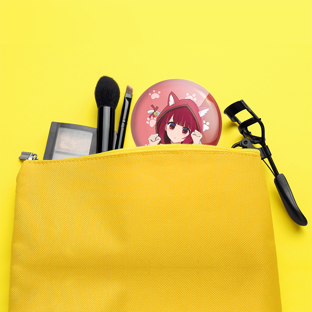 آینه های جیبی کانا انیمه اوشی نو کو خندالو دایره ای به قطر 7.5 سانتی متر می باشد که نه خیلی بزرگ و غیر قابل استفاده در کیف آرایشی ست و نه خیلی کوچک که تصویر خاصی در آن مشاهده نشود. سایزی استاندارد و کارآمد دارد و مناسب قرار گیری در کیف لوازم آرایش و کیف های کوچک دستی نیز هست.