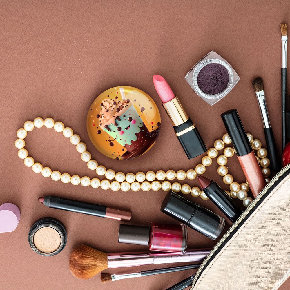 آینه های جیبی کاپ کیک خندالو دایره ای به قطر 7.5 سانتی متر می باشد که نه خیلی بزرگ و غیر قابل استفاده در کیف آرایشی ست و نه خیلی کوچک که تصویر خاصی در آن مشاهده نشود. سایزی استاندارد و کارآمد دارد و مناسب قرار گیری در کیف لوازم آرایش و کیف های کوچک دستی نیز هست.