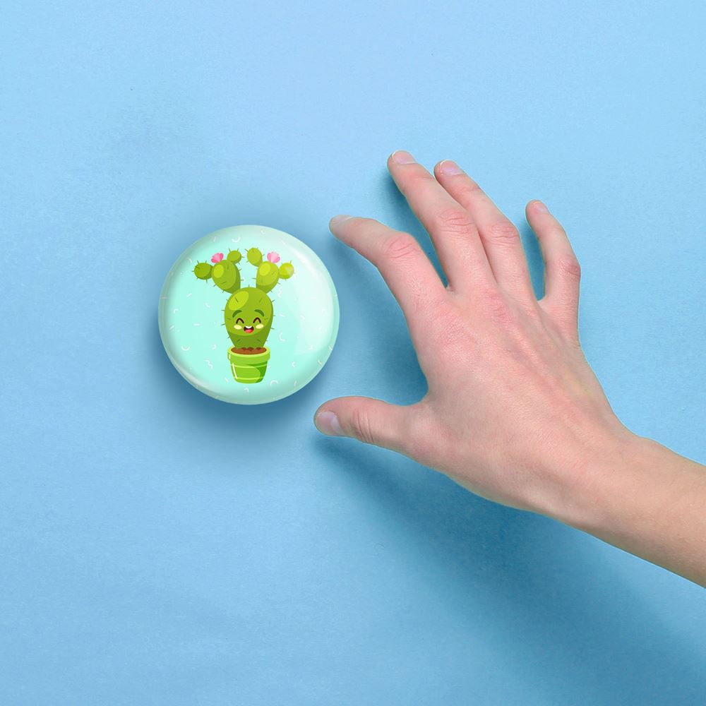آینه های جیبی کاکتوس خندالو دایره ای به قطر 7.5 سانتی متر می باشد که نه خیلی بزرگ و غیر قابل استفاده در کیف آرایشی ست و نه خیلی کوچک که تصویر خاصی در آن مشاهده نشود. سایزی استاندارد و کارآمد دارد و مناسب قرار گیری در کیف لوازم آرایش و کیف های کوچک دستی نیز هست.