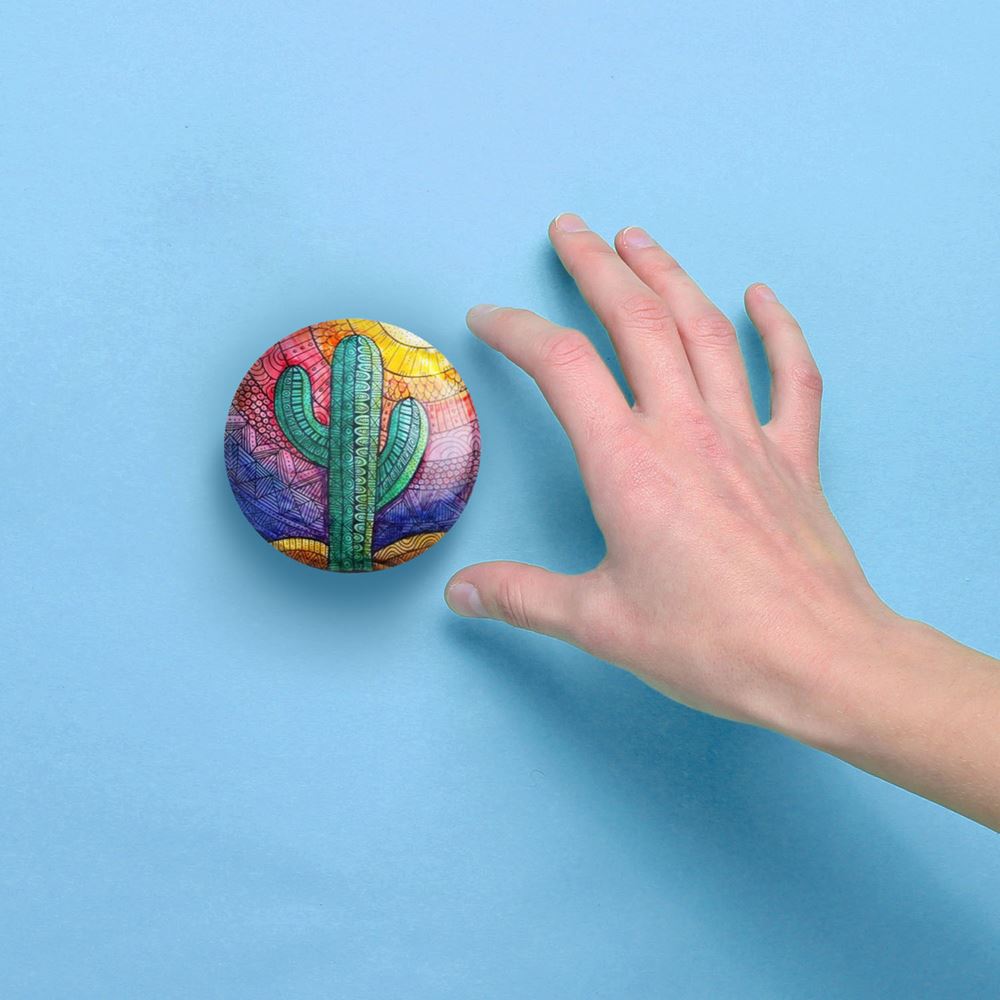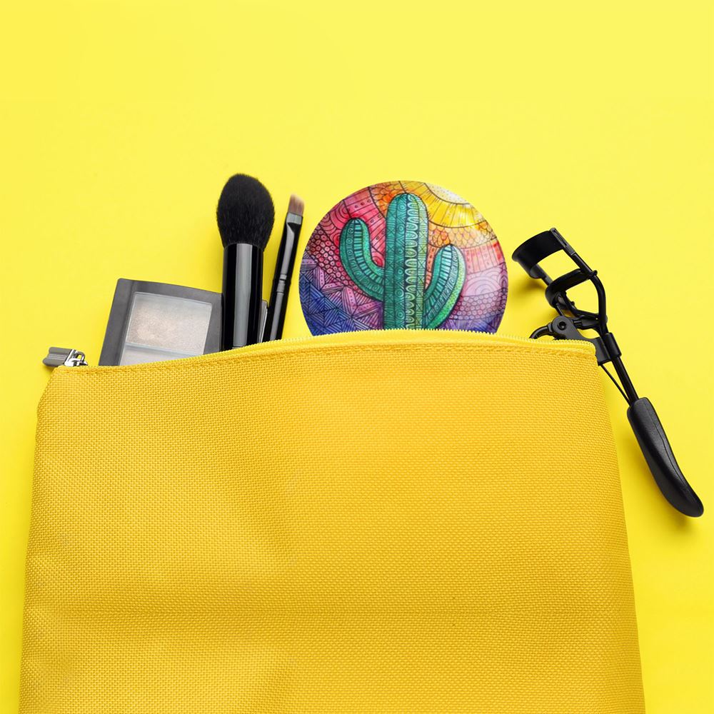 آینه های جیبی کاکتوس خندالو دایره ای به قطر 7.5 سانتی متر می باشد که نه خیلی بزرگ و غیر قابل استفاده در کیف آرایشی ست و نه خیلی کوچک که تصویر خاصی در آن مشاهده نشود. سایزی استاندارد و کارآمد دارد و مناسب قرار گیری در کیف لوازم آرایش و کیف های کوچک دستی نیز هست.