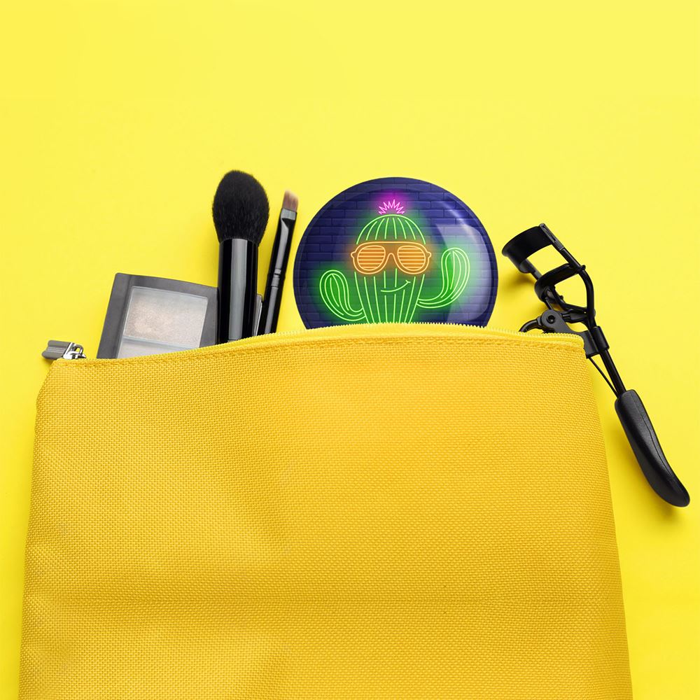 آینه های جیبی کاکتوس خندالو دایره ای به قطر 7.5 سانتی متر می باشد که نه خیلی بزرگ و غیر قابل استفاده در کیف آرایشی ست و نه خیلی کوچک که تصویر خاصی در آن مشاهده نشود. سایزی استاندارد و کارآمد دارد و مناسب قرار گیری در کیف لوازم آرایش و کیف های کوچک دستی نیز هست.