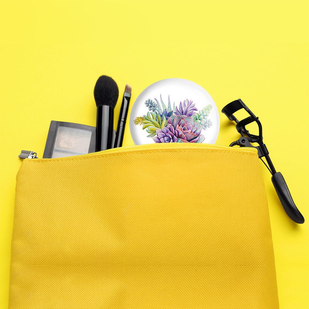 آینه های جیبی کاکتوس خندالو دایره ای به قطر 7.5 سانتی متر می باشد که نه خیلی بزرگ و غیر قابل استفاده در کیف آرایشی ست و نه خیلی کوچک که تصویر خاصی در آن مشاهده نشود. سایزی استاندارد و کارآمد دارد و مناسب قرار گیری در کیف لوازم آرایش و کیف های کوچک دستی نیز هست.