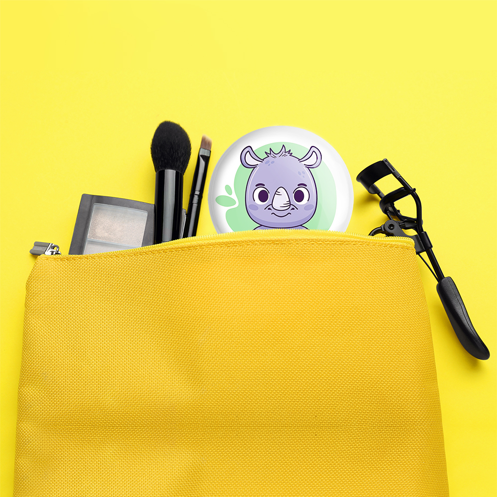 آینه های جیبی کرگدن حیوانات بامزه خندالو دایره ای به قطر 7.5 سانتی متر می باشد که نه خیلی بزرگ و غیر قابل استفاده در کیف آرایشی ست و نه خیلی کوچک که تصویر خاصی در آن مشاهده نشود. سایزی استاندارد و کارآمد دارد و مناسب قرار گیری در کیف لوازم آرایش و کیف های کوچک دستی نیز هست. بدنه ی آینه جیبی کرگدن حیوانات بامزه در قسمتی که آینه را در بر گرفته فلزی بوده و ظاهر براق و بسیار زیبایی دارد. چاپ طرح در پشت آینه بوسیله چاپگرهای دیجیتال شش رنگ با شفافیت و کیفیتی مثال زدنی انجام گرفته و با روکش لمینت حرارتی پوشیده شده که در مقابل آسیب و خط و خش مقاوم بوده و کیفیت بالایی دارد. آینه های جیبی کرگدن حیوانات بامزه خندالو با تنوع طرحی بسیار بالا، سلیقه هر نوع مخاطبی را تامین میکند.