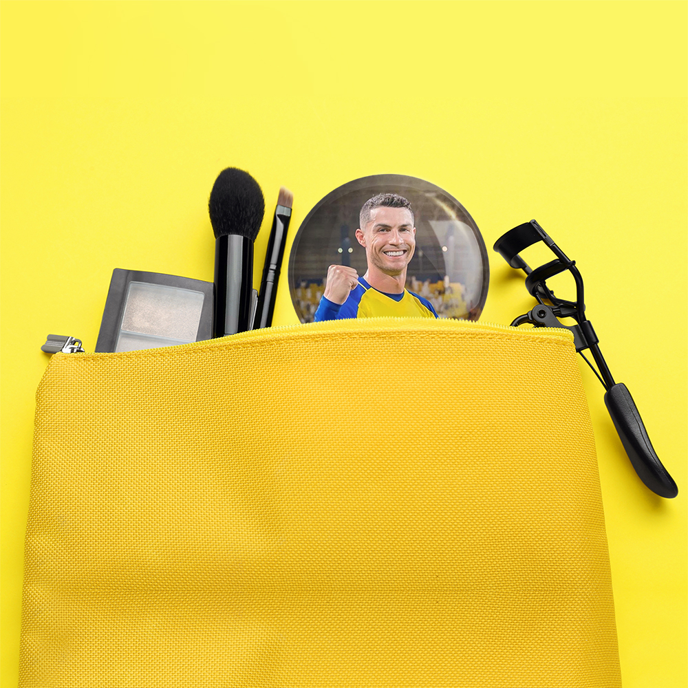آینه های جیبی کریستیانو رونالدو خندالو دایره ای به قطر 7.5 سانتی متر می باشد که نه خیلی بزرگ و غیر قابل استفاده در کیف آرایشی ست و نه خیلی کوچک که تصویر خاصی در آن مشاهده نشود. سایزی استاندارد و کارآمد دارد و مناسب قرار گیری در کیف لوازم آرایش و کیف های کوچک دستی نیز هست.