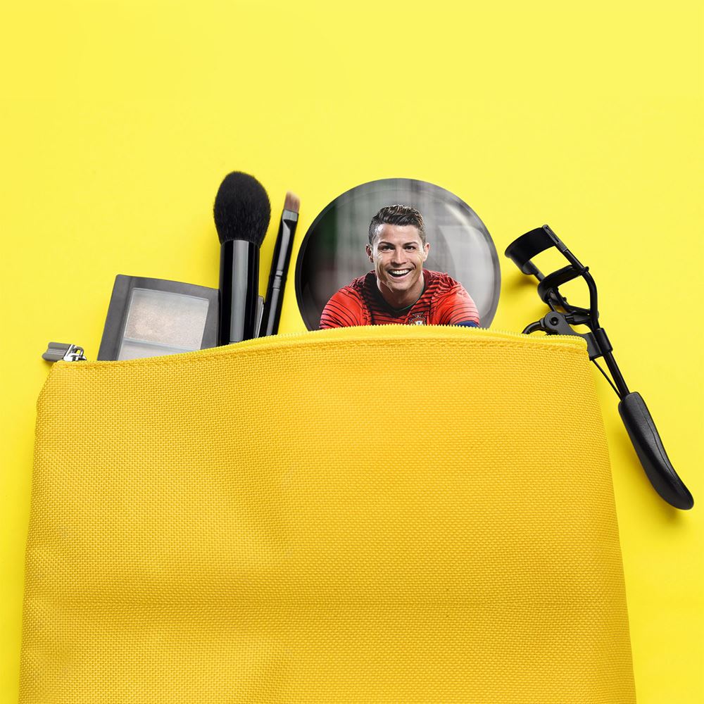 آینه های جیبی کریستیانو رونالدو خندالو دایره ای به قطر 7.5 سانتی متر می باشد که نه خیلی بزرگ و غیر قابل استفاده در کیف آرایشی ست و نه خیلی کوچک که تصویر خاصی در آن مشاهده نشود. سایزی استاندارد و کارآمد دارد و مناسب قرار گیری در کیف لوازم آرایش و کیف های کوچک دستی نیز هست.