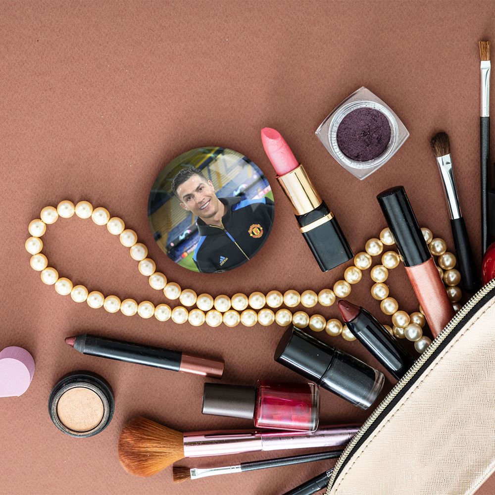 آینه های جیبی کریستیانو رونالدو خندالو دایره ای به قطر 7.5 سانتی متر می باشد که نه خیلی بزرگ و غیر قابل استفاده در کیف آرایشی ست و نه خیلی کوچک که تصویر خاصی در آن مشاهده نشود. سایزی استاندارد و کارآمد دارد و مناسب قرار گیری در کیف لوازم آرایش و کیف های کوچک دستی نیز هست.