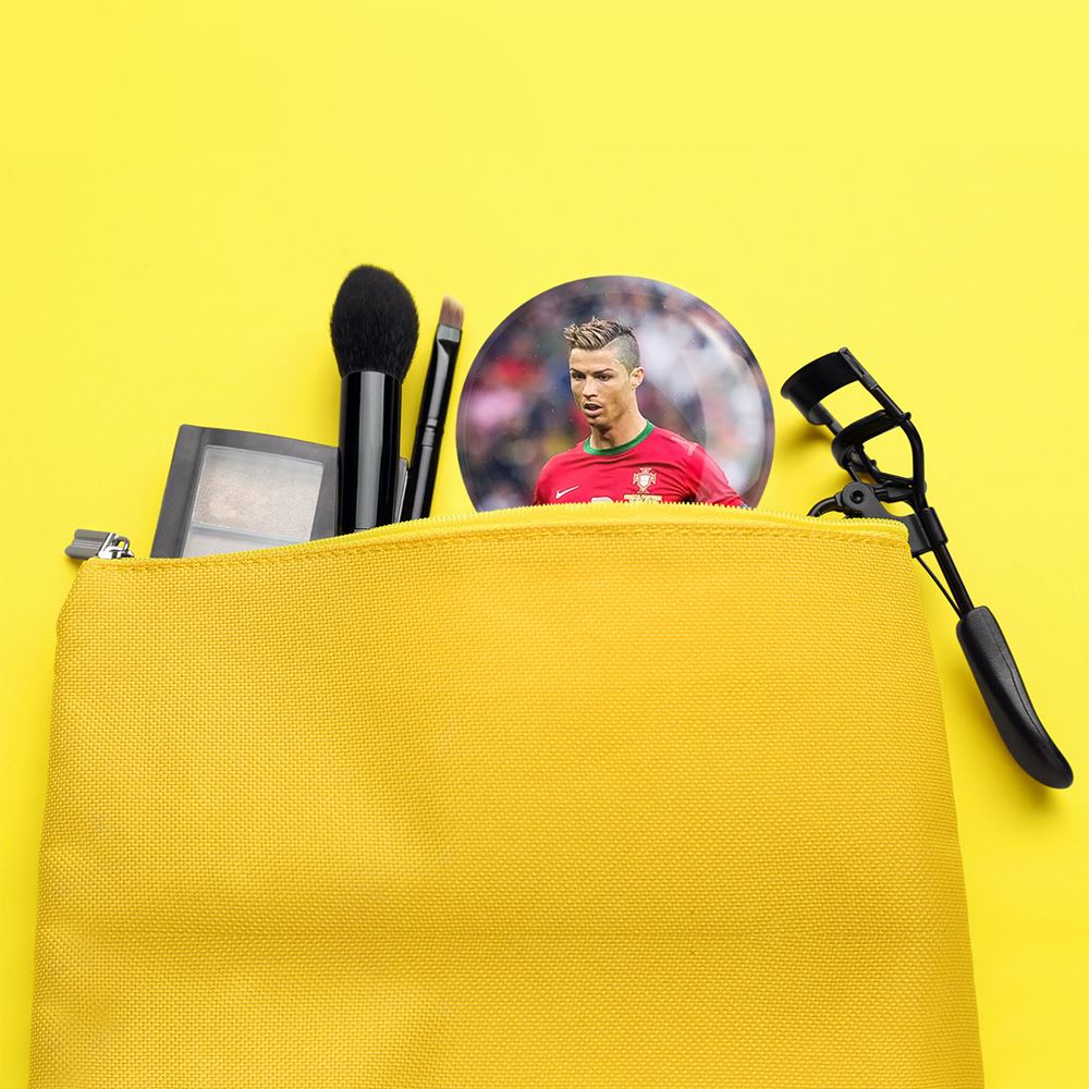 آینه های جیبی کریستیانو رونالدو خندالو دایره ای به قطر 7.5 سانتی متر می باشد که نه خیلی بزرگ و غیر قابل استفاده در کیف آرایشی ست و نه خیلی کوچک که تصویر خاصی در آن مشاهده نشود. سایزی استاندارد و کارآمد دارد و مناسب قرار گیری در کیف لوازم آرایش و کیف های کوچک دستی نیز هست.