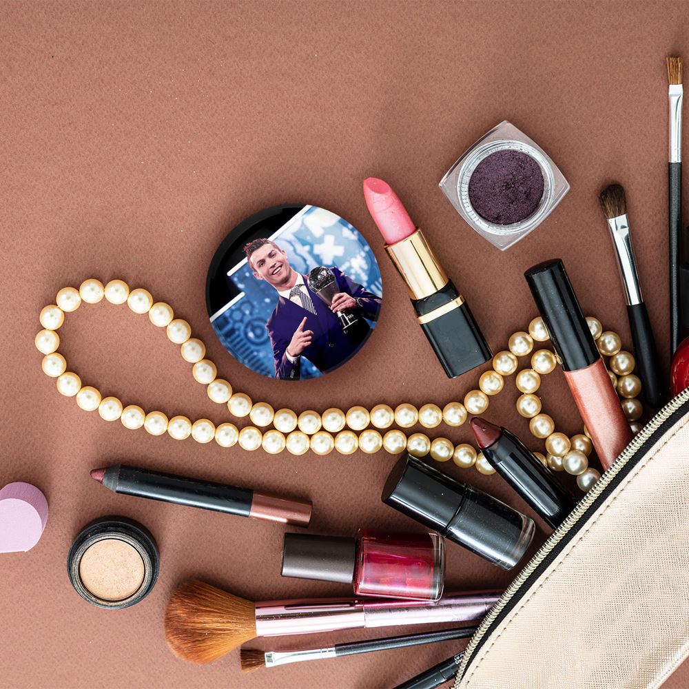 آینه های جیبی کریستیانو رونالدو خندالو دایره ای به قطر 7.5 سانتی متر می باشد که نه خیلی بزرگ و غیر قابل استفاده در کیف آرایشی ست و نه خیلی کوچک که تصویر خاصی در آن مشاهده نشود. سایزی استاندارد و کارآمد دارد و مناسب قرار گیری در کیف لوازم آرایش و کیف های کوچک دستی نیز هست.