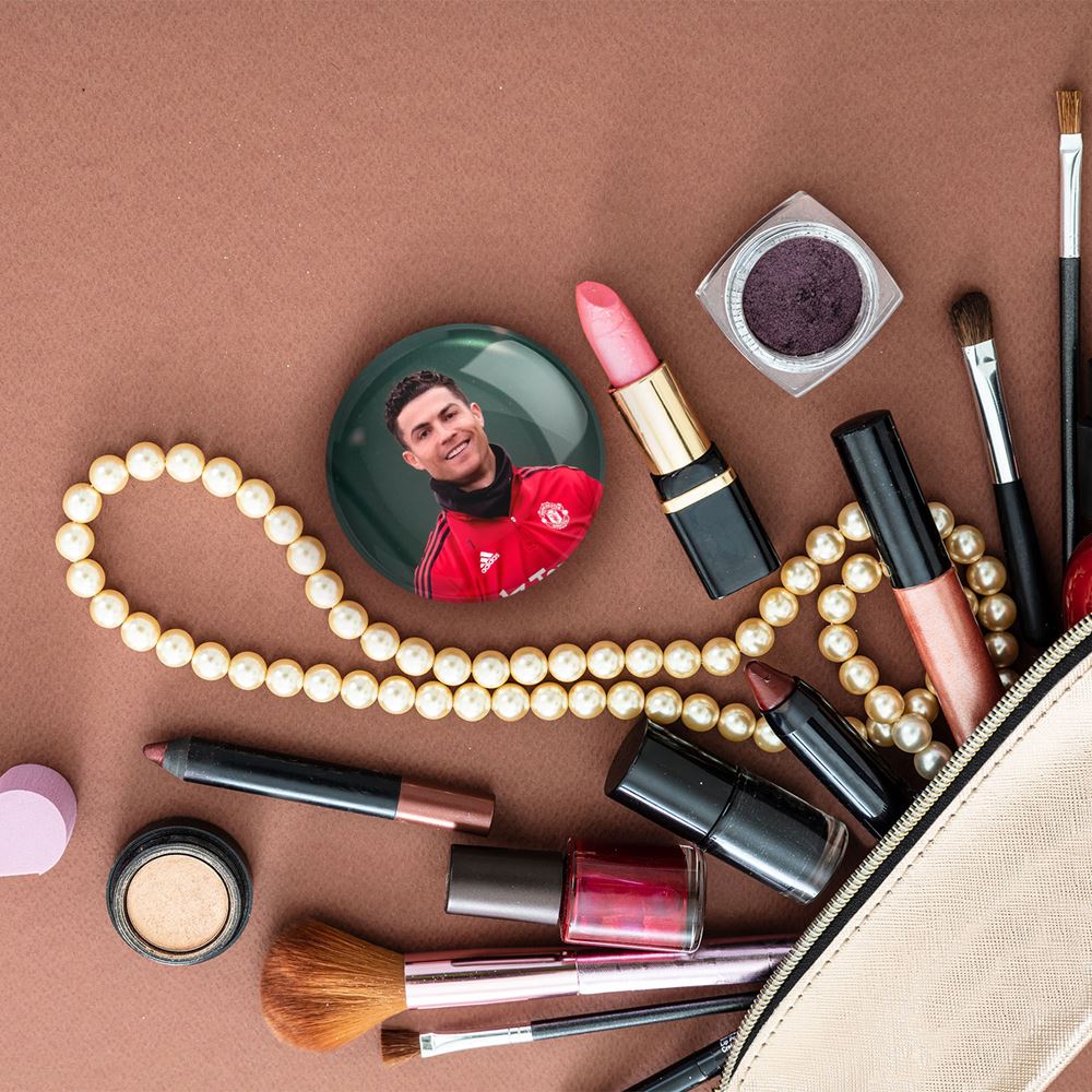آینه های جیبی کریستیانو رونالدو خندالو دایره ای به قطر 7.5 سانتی متر می باشد که نه خیلی بزرگ و غیر قابل استفاده در کیف آرایشی ست و نه خیلی کوچک که تصویر خاصی در آن مشاهده نشود. سایزی استاندارد و کارآمد دارد و مناسب قرار گیری در کیف لوازم آرایش و کیف های کوچک دستی نیز هست.