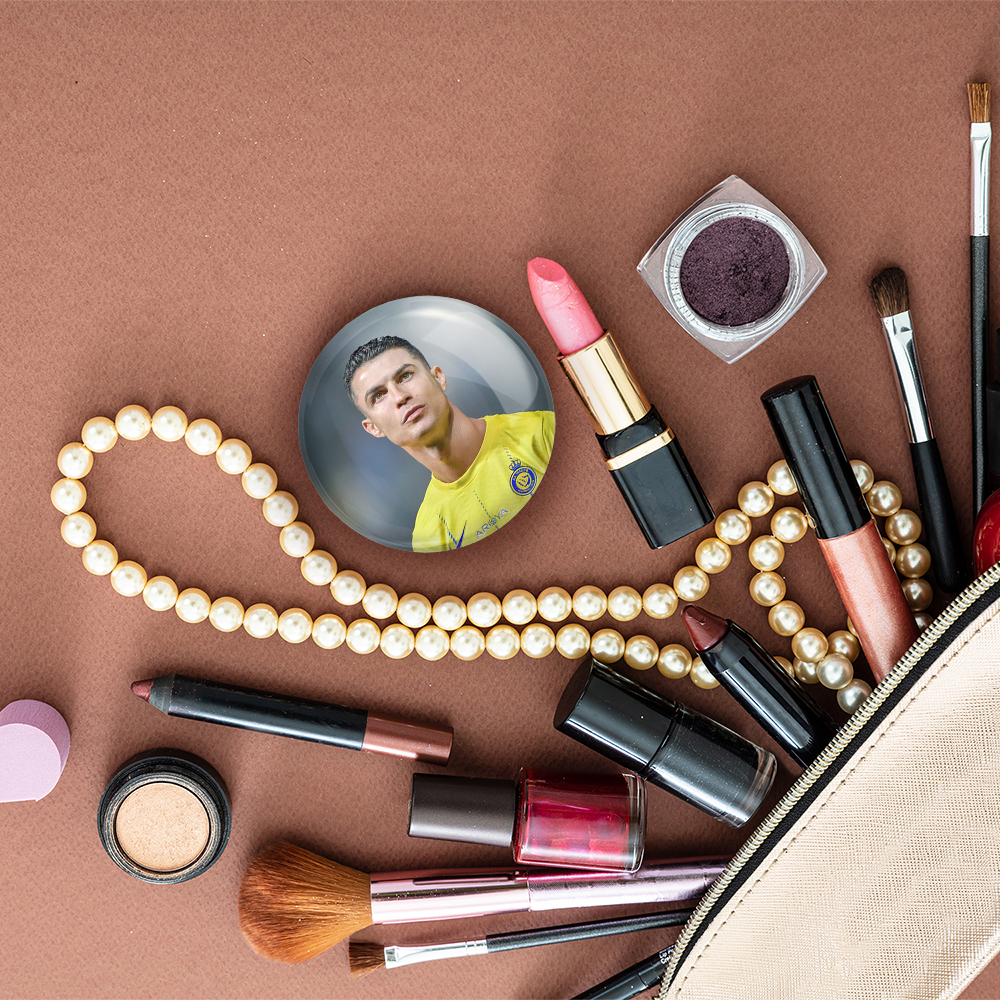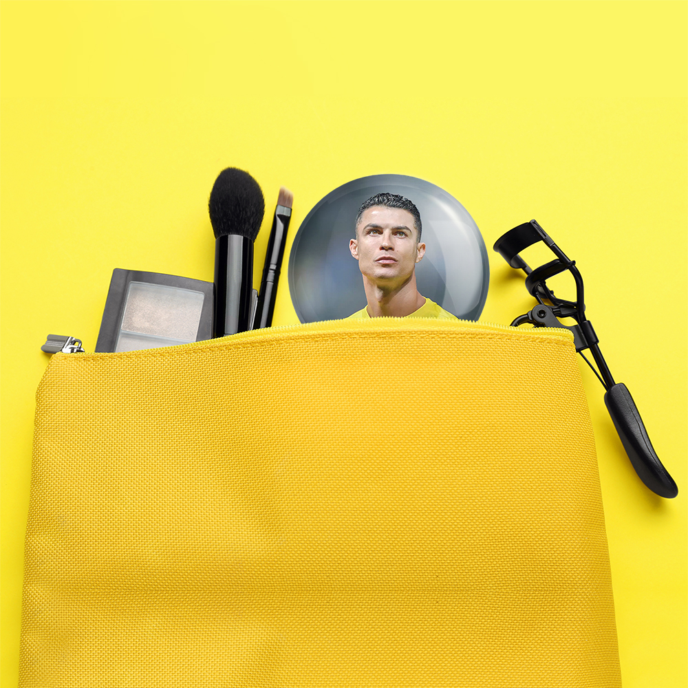 آینه های جیبی کریستیانو رونالدو خندالو دایره ای به قطر 7.5 سانتی متر می باشد که نه خیلی بزرگ و غیر قابل استفاده در کیف آرایشی ست و نه خیلی کوچک که تصویر خاصی در آن مشاهده نشود. سایزی استاندارد و کارآمد دارد و مناسب قرار گیری در کیف لوازم آرایش و کیف های کوچک دستی نیز هست.