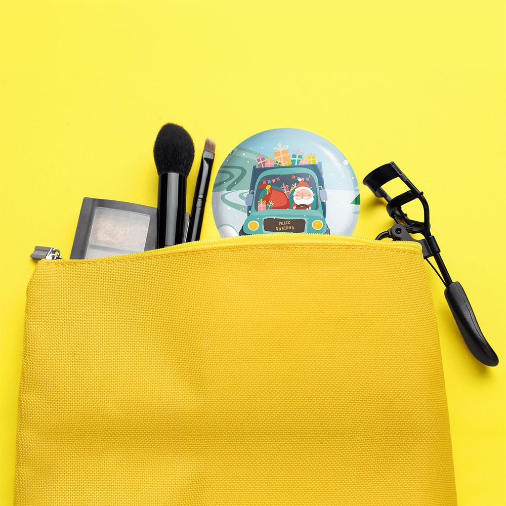 آینه های جیبی کریسمس Christmas خندالو دایره ای به قطر 7.5 سانتی متر می باشد که نه خیلی بزرگ و غیر قابل استفاده در کیف آرایشی ست و نه خیلی کوچک که تصویر خاصی در آن مشاهده نشود. سایزی استاندارد و کارآمد دارد و مناسب قرار گیری در کیف لوازم آرایش و کیف های کوچک دستی نیز هست.