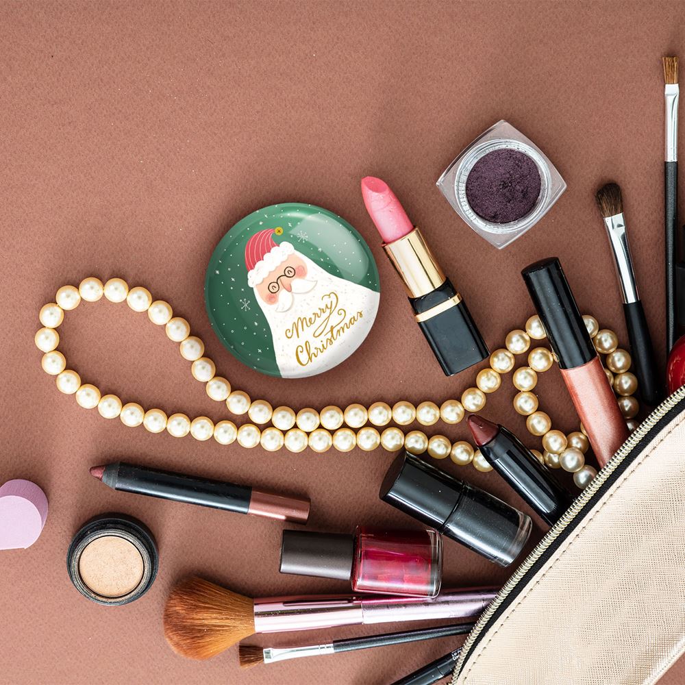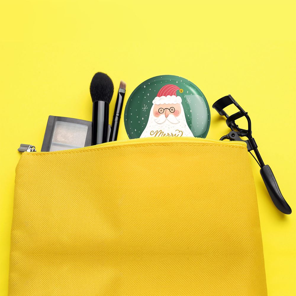 آینه های جیبی کریسمس Christmas خندالو دایره ای به قطر 7.5 سانتی متر می باشد که نه خیلی بزرگ و غیر قابل استفاده در کیف آرایشی ست و نه خیلی کوچک که تصویر خاصی در آن مشاهده نشود. سایزی استاندارد و کارآمد دارد و مناسب قرار گیری در کیف لوازم آرایش و کیف های کوچک دستی نیز هست.