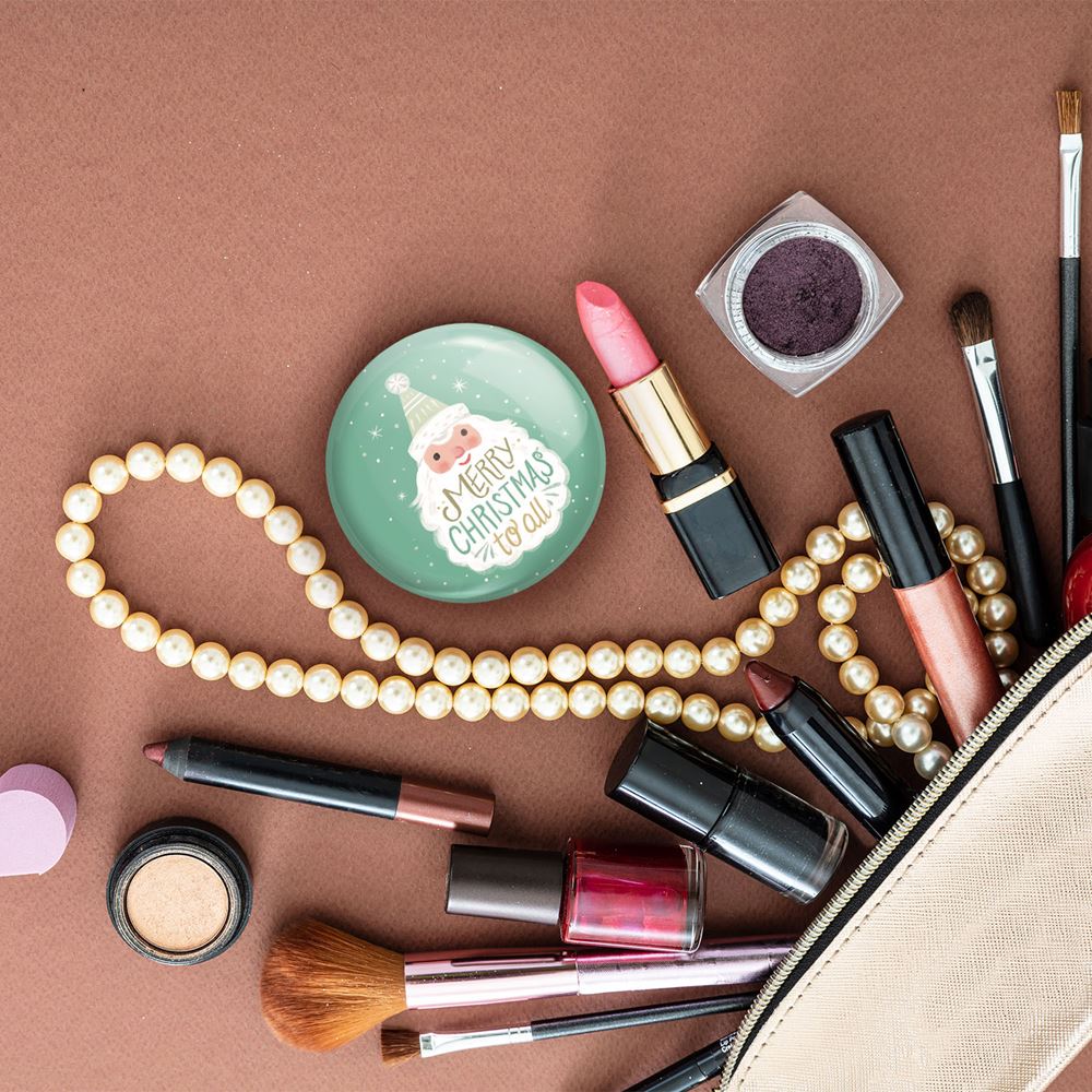 آینه های جیبی کریسمس Christmas خندالو دایره ای به قطر 7.5 سانتی متر می باشد که نه خیلی بزرگ و غیر قابل استفاده در کیف آرایشی ست و نه خیلی کوچک که تصویر خاصی در آن مشاهده نشود. سایزی استاندارد و کارآمد دارد و مناسب قرار گیری در کیف لوازم آرایش و کیف های کوچک دستی نیز هست.