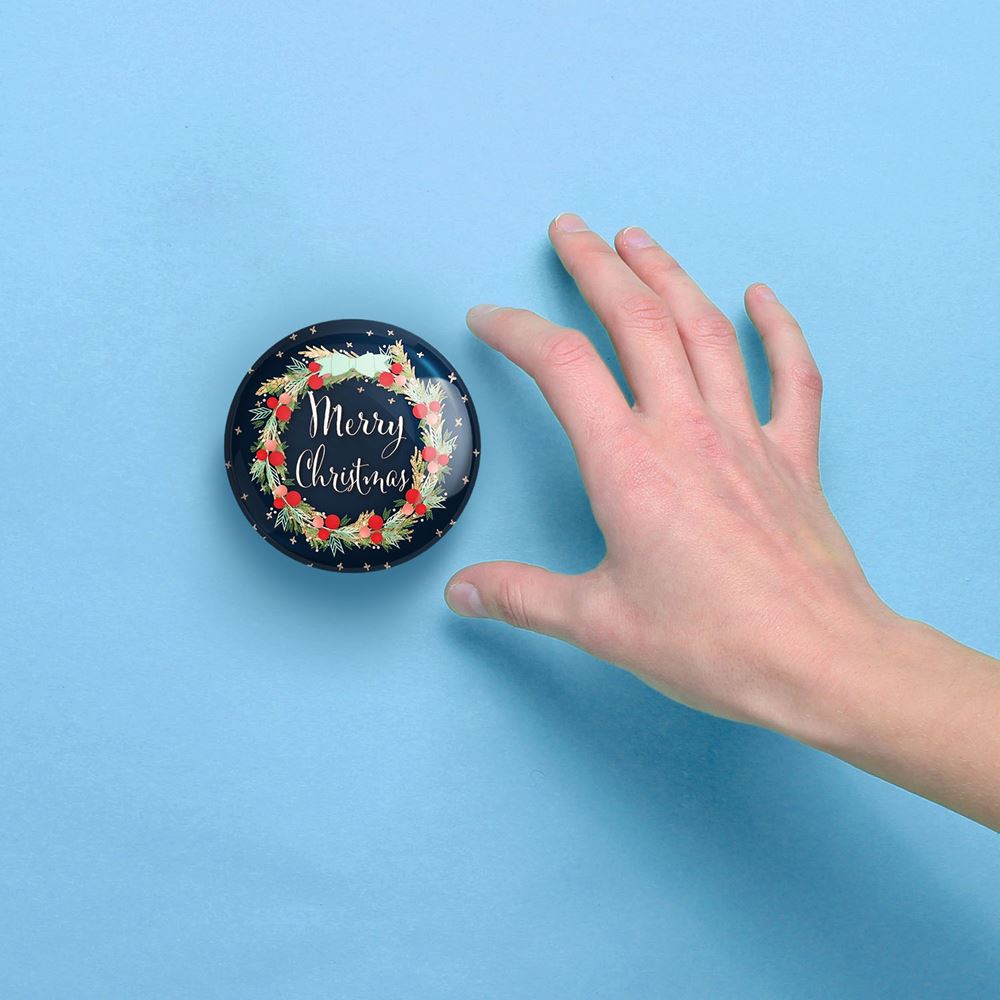 آینه های جیبی کریسمس Christmas خندالو دایره ای به قطر 7.5 سانتی متر می باشد که نه خیلی بزرگ و غیر قابل استفاده در کیف آرایشی ست و نه خیلی کوچک که تصویر خاصی در آن مشاهده نشود. سایزی استاندارد و کارآمد دارد و مناسب قرار گیری در کیف لوازم آرایش و کیف های کوچک دستی نیز هست.