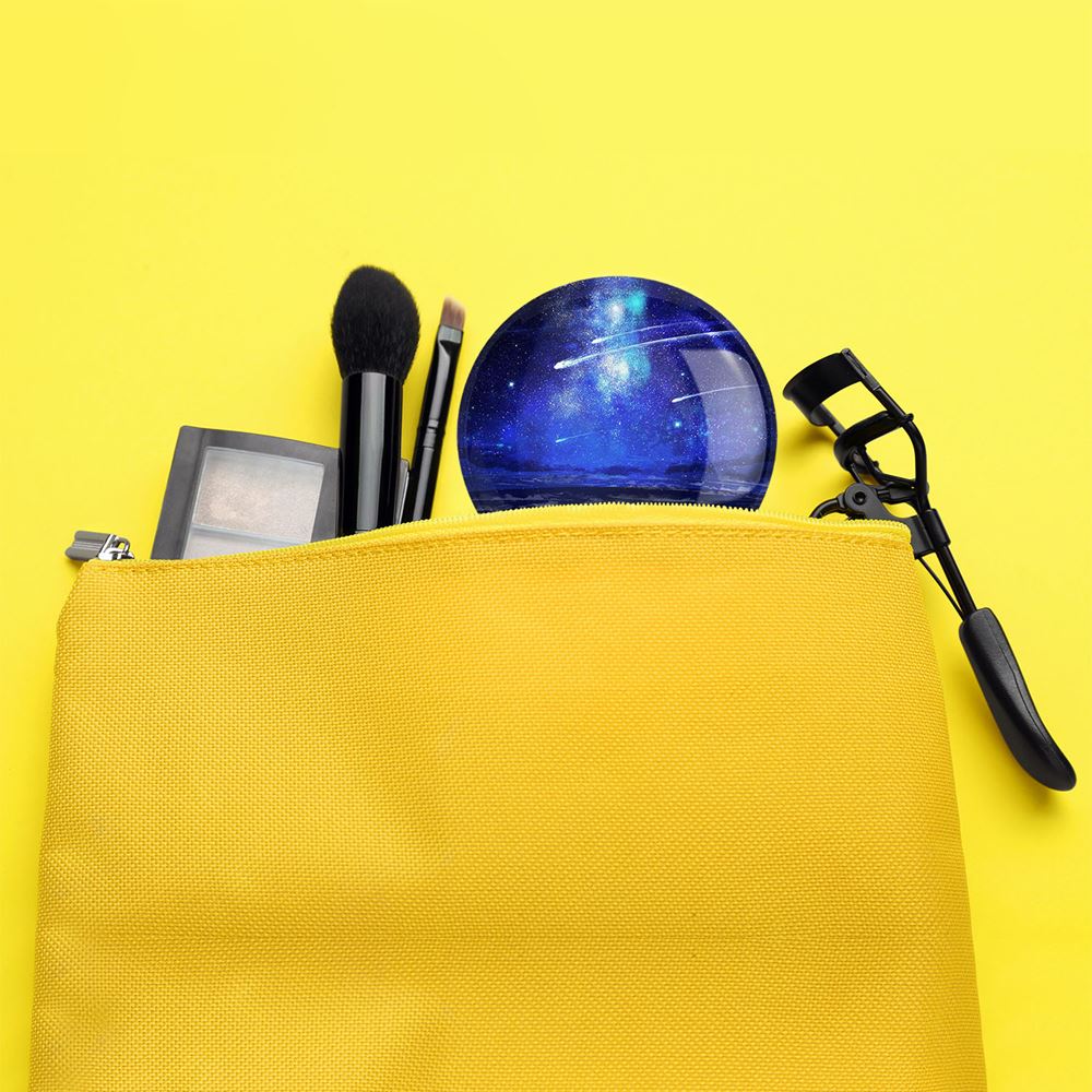 آینه های جیبی کهکشان و سیاره ها خندالو دایره ای به قطر 7.5 سانتی متر می باشد که نه خیلی بزرگ و غیر قابل استفاده در کیف آرایشی ست و نه خیلی کوچک که تصویر خاصی در آن مشاهده نشود. سایزی استاندارد و کارآمد دارد و مناسب قرار گیری در کیف لوازم آرایش و کیف های کوچک دستی نیز هست.