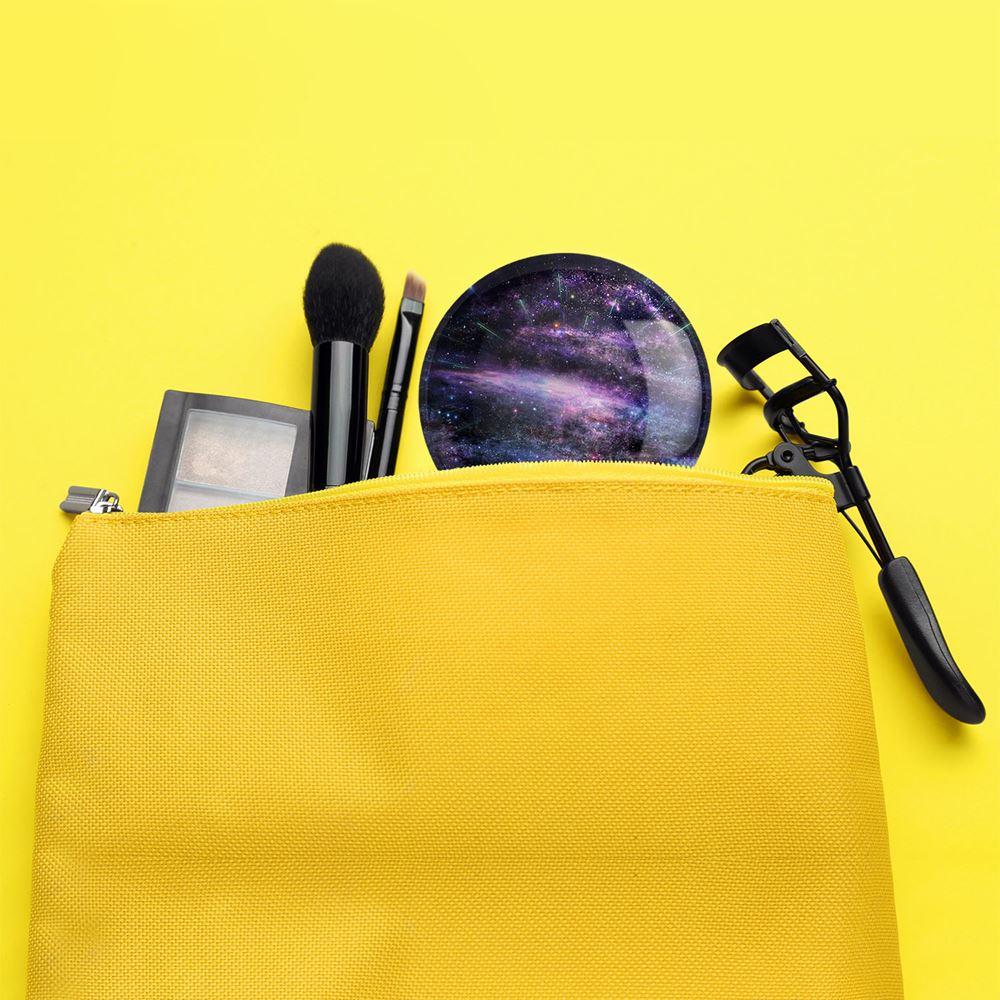آینه های جیبی کهکشان و سیاره ها خندالو دایره ای به قطر 7.5 سانتی متر می باشد که نه خیلی بزرگ و غیر قابل استفاده در کیف آرایشی ست و نه خیلی کوچک که تصویر خاصی در آن مشاهده نشود. سایزی استاندارد و کارآمد دارد و مناسب قرار گیری در کیف لوازم آرایش و کیف های کوچک دستی نیز هست.