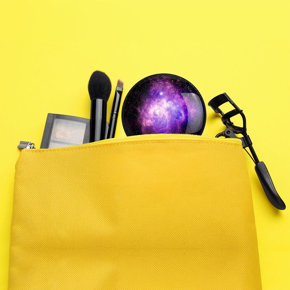 آینه های جیبی کهکشان و سیاره ها خندالو دایره ای به قطر 7.5 سانتی متر می باشد که نه خیلی بزرگ و غیر قابل استفاده در کیف آرایشی ست و نه خیلی کوچک که تصویر خاصی در آن مشاهده نشود. سایزی استاندارد و کارآمد دارد و مناسب قرار گیری در کیف لوازم آرایش و کیف های کوچک دستی نیز هست.