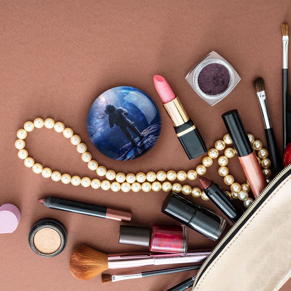 آینه های جیبی کهکشان و سیاره ها خندالو دایره ای به قطر 7.5 سانتی متر می باشد که نه خیلی بزرگ و غیر قابل استفاده در کیف آرایشی ست و نه خیلی کوچک که تصویر خاصی در آن مشاهده نشود. سایزی استاندارد و کارآمد دارد و مناسب قرار گیری در کیف لوازم آرایش و کیف های کوچک دستی نیز هست.